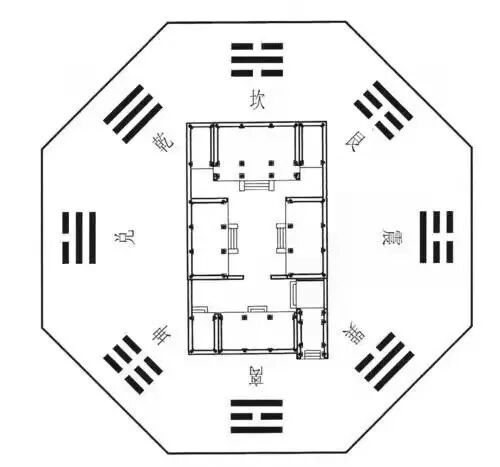 四合院中因不同房间所在方位不同又因一年四季之差,各个房间居室的风水和各种优势大有不同。综合各方面为据,融入传统礼学思想。正房坐北朝南,冬日暖阳可洒入屋内,冬暖夏凉。正房正中间的意见称为堂屋,亦称中堂。其内一般置一八仙桌,分设一椅在两旁。两侧厢房也体现出长幼尊卑之仪。以东厢房为尊,西厢房为卑,东厢房一般比西厢房略高。之所以有差异主要还是环境天气所造就,东厢房的舒适度比西厢房更高。四合院的大门一般居整个院落的东南处而非正南方,以取“紫气东来”之意。而其位占八卦之中的巽位,即风位,以此引进东南风。而在中国整体的环境中东南风多是暖湿气流,以此驱寒。
