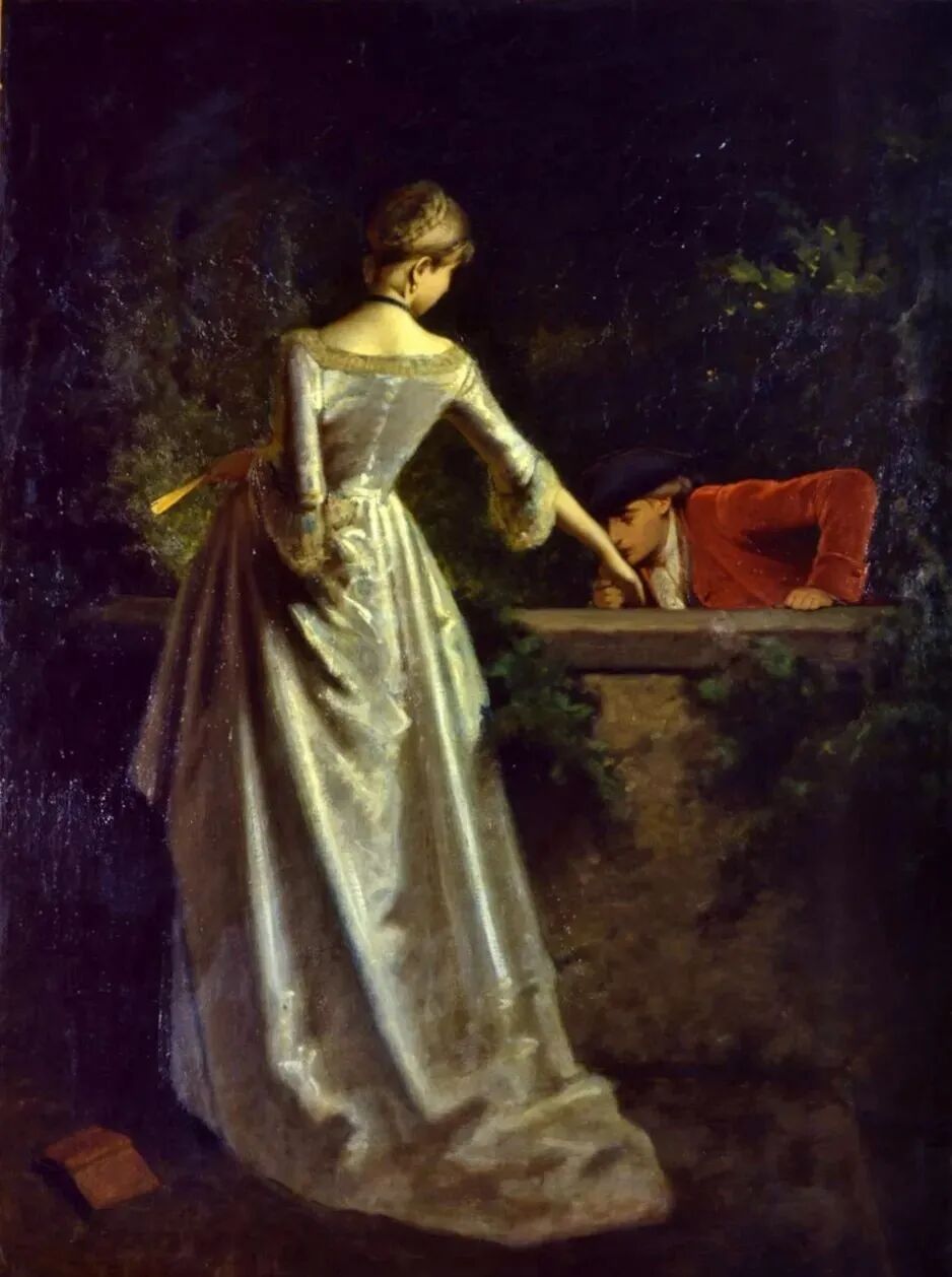 C. de Blay "Молодая девушка при участии компаньонки тайно даёт розу любовнику", 1865