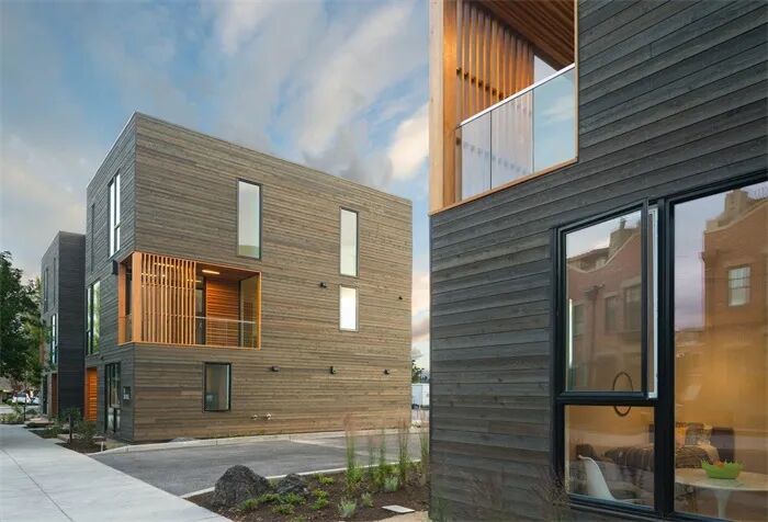 Basecamp位于美国俄勒冈州中部城市Bend,因其是户外运动天堂而广为人知。市中心步行方便,距离Deschutes河很近,可以徒步、骑自行车和滑雪。在一个既有建筑厚重又让人联想到滑雪小屋的地方,Basecamp体现了对景观的尊重,使用了与周边联排别墅相似的建筑形式和材料。