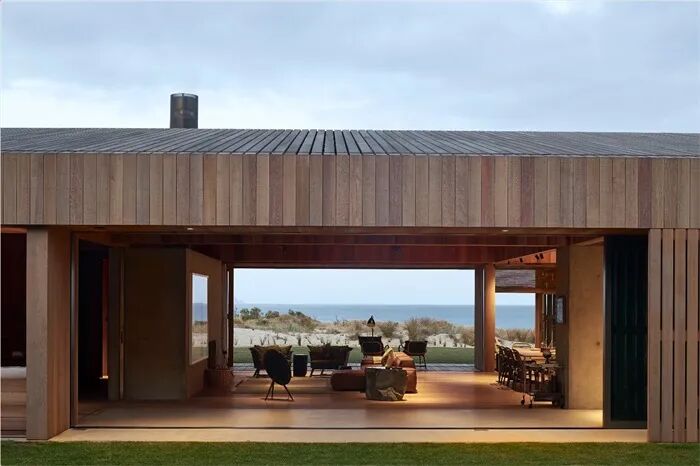 在新西兰北岛东海岸的沙丘和松林中,有两座山墙木屋。建筑坐落在沙丘边缘,营造出休闲、经典的氛围。房屋之间设置了座位区和消防区。为了调节光线、空气、视野和隐私,房屋采用了木百叶滑门。随着时间的推移,木材包覆层和屋顶的材料将老化并呈现灰白色,从而将建筑与景观融为一体。