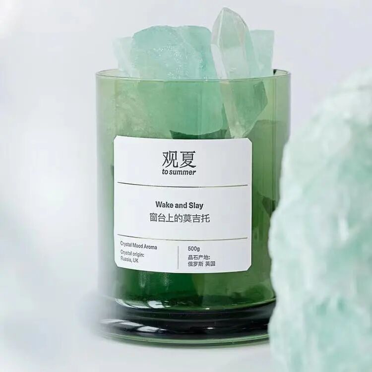 橘子:但那个标签可以定制啊,适合送礼,还能把自己喜欢的句子印上去。晶石香薰最好看,每个味道会配对应颜色的晶石,放着当摆件都足够有格调。