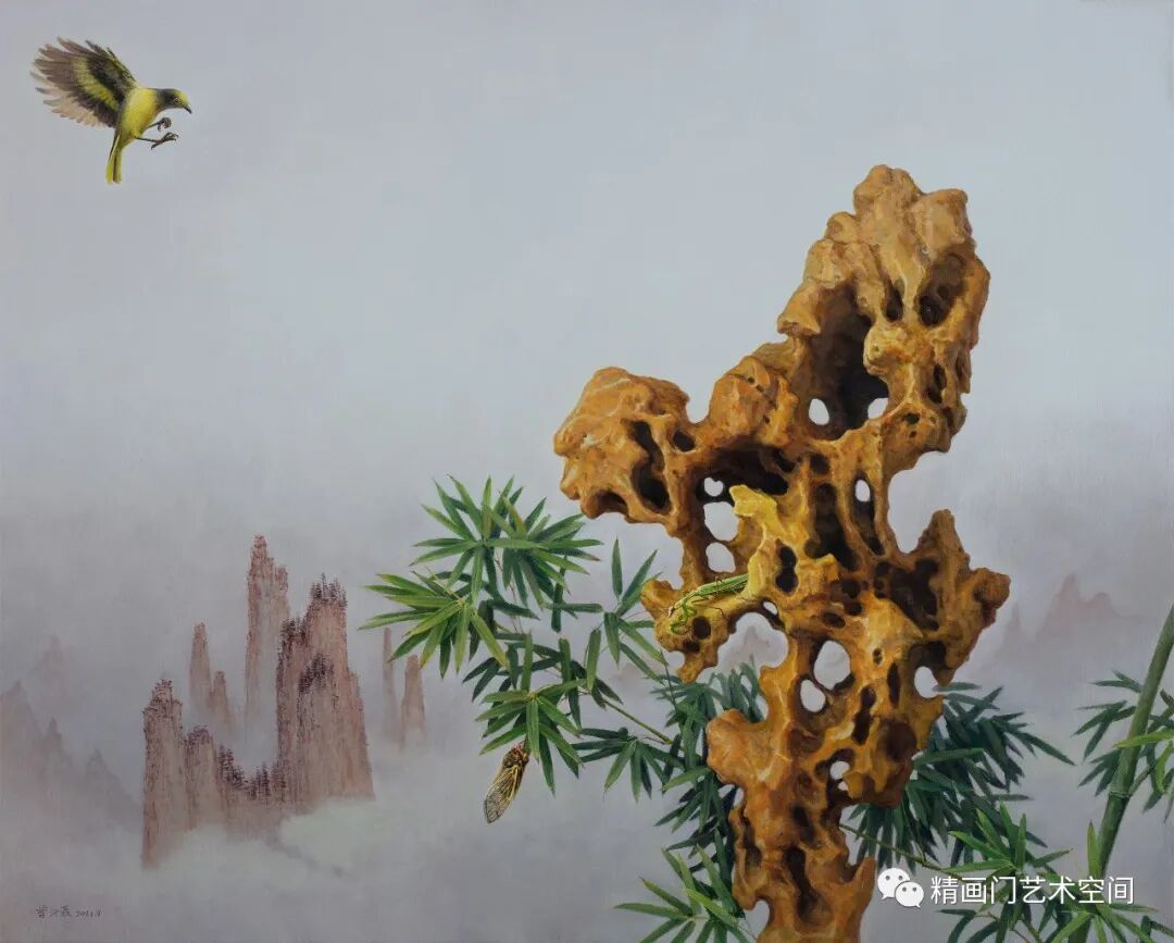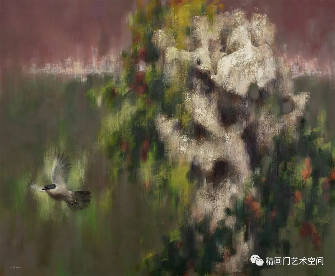 有些鸟为主题的作品,小鸟和家禽不同的地方在于,小鸟可以飞翔,视野和空间自然更大,这似乎和飘泊在外的状态一致,所以小鸟为主题的作品更多是当下生活的感受。这里面有生活的理想,也有着与城市之间的某些思考。作为创作者,总是想说些话,只是又不想说得那么直白,所以,通过景与物抒怀是最好的选择。
