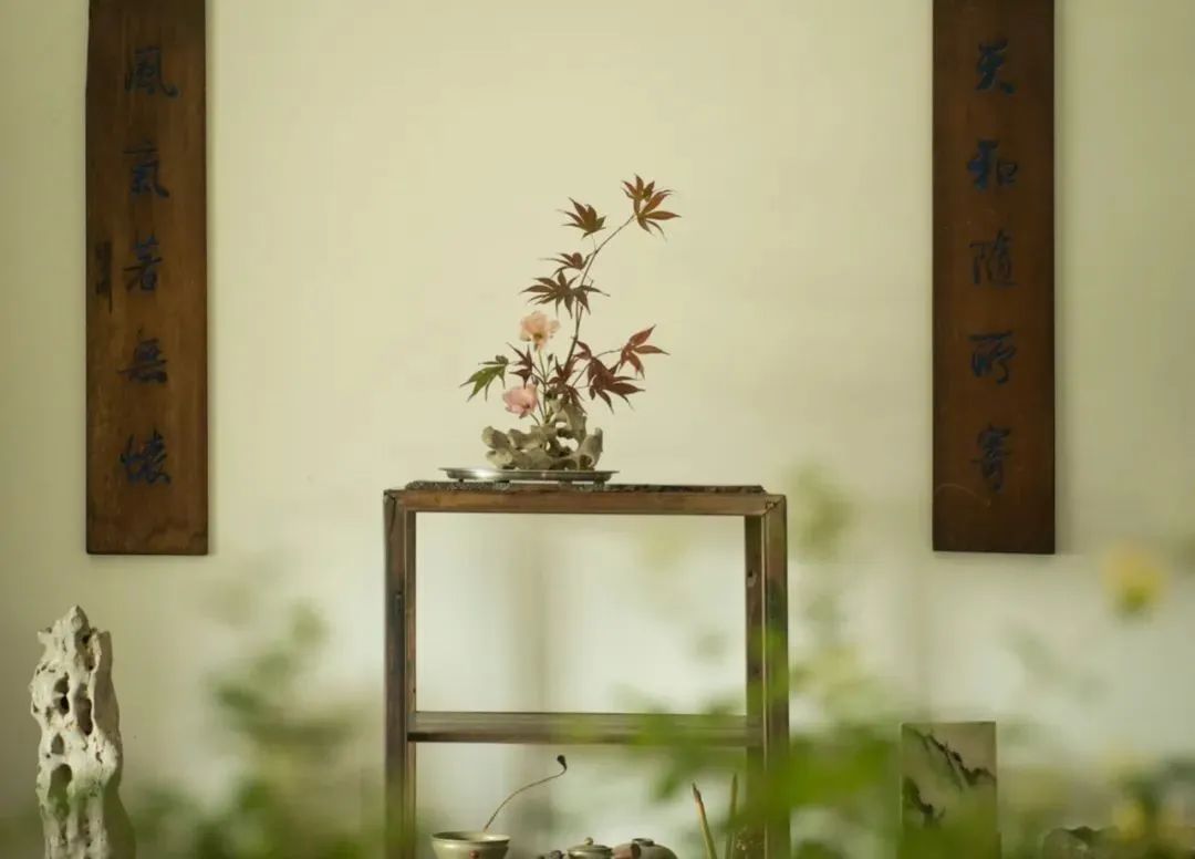 插花不可太多,以三枝或五枝最为得当,并且不可太齐,应当有高有低,也应当有疏有密。瓶口小的,自是容易插好,要是瓶口太大,那么李笠翁《闲情偶寄》中发明“撒”之一物,说是以坚木为之,大小其形,不拘一格,其中或扁或方,或为三角,但须圆形其外,以便合瓶。我以为此法还是太费,不如剪一根树枝,横拴在瓶口以内,或多用一根,作十字形,那么插了花可以稳定,不会动摇了。