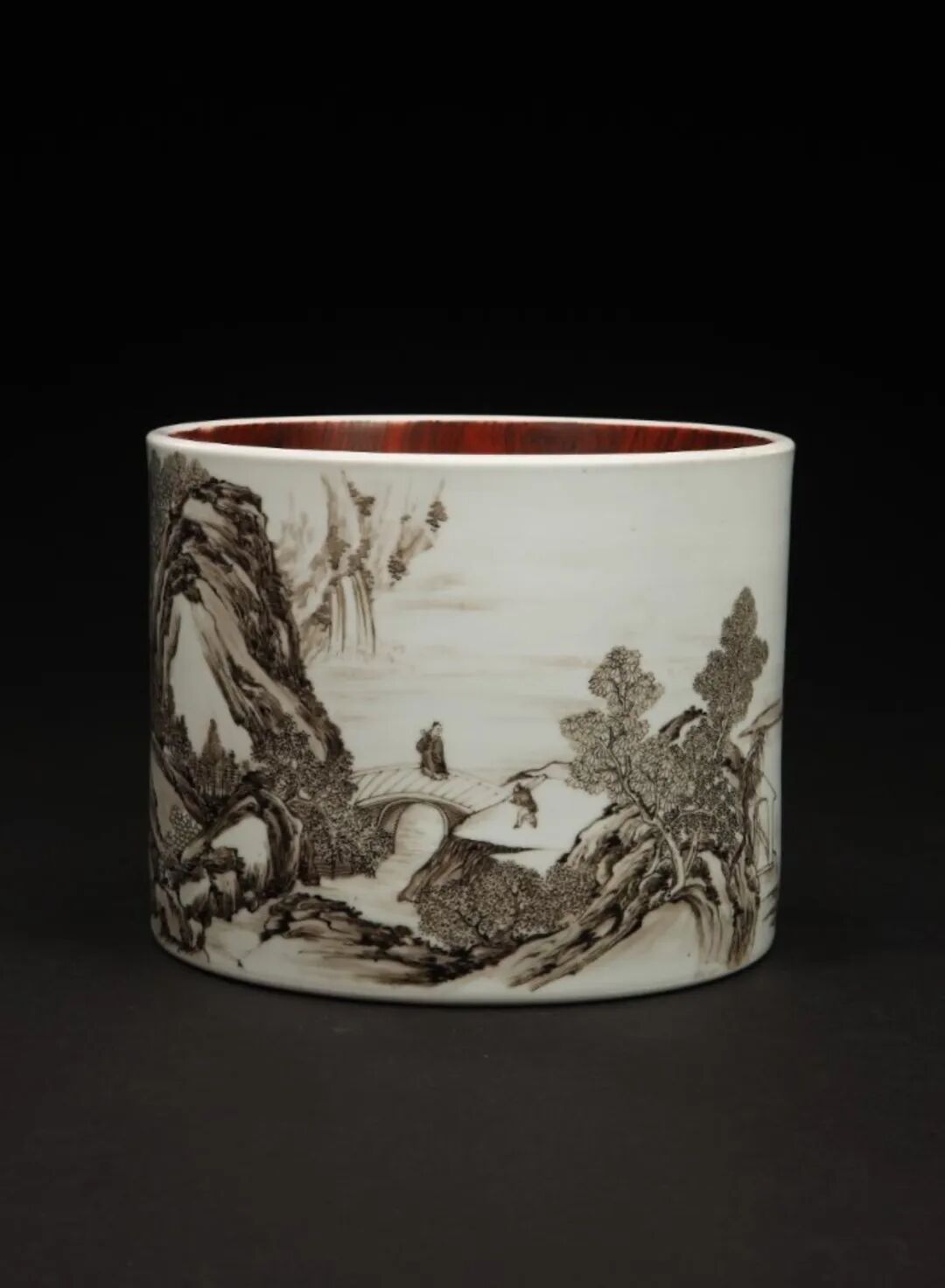 ▲清康熙 青花釉里红圣主得贤臣颂文笔筒