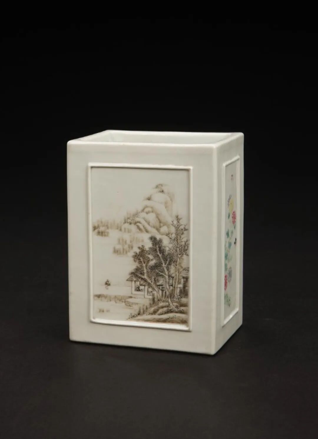 ▲右 明崇祯 青花文王访贤图笔筒 美国大都会博物馆藏