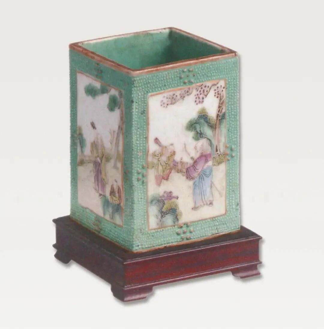 近期,域鉴APP的严选优品中上新一晚清·粉彩博古纹笔筒,愿请诸君共赏之。