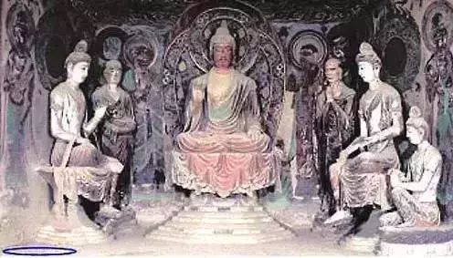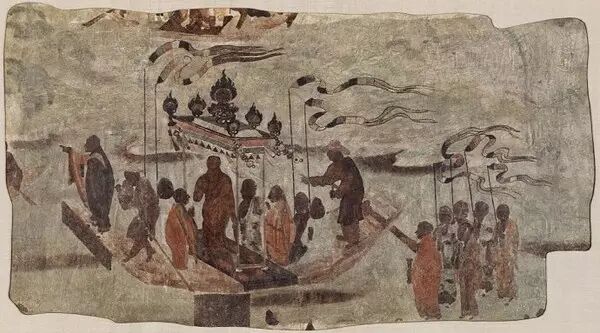 莫高窟第323窟佛教史迹画:八人乘船运送一尊佛像 哈佛福格艺术博物馆藏