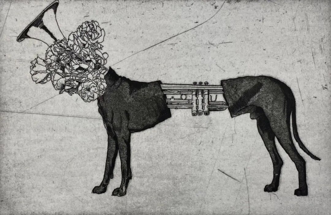 《Trumpetdog with flowerneck》Copperplate paper 14×24cm 2020