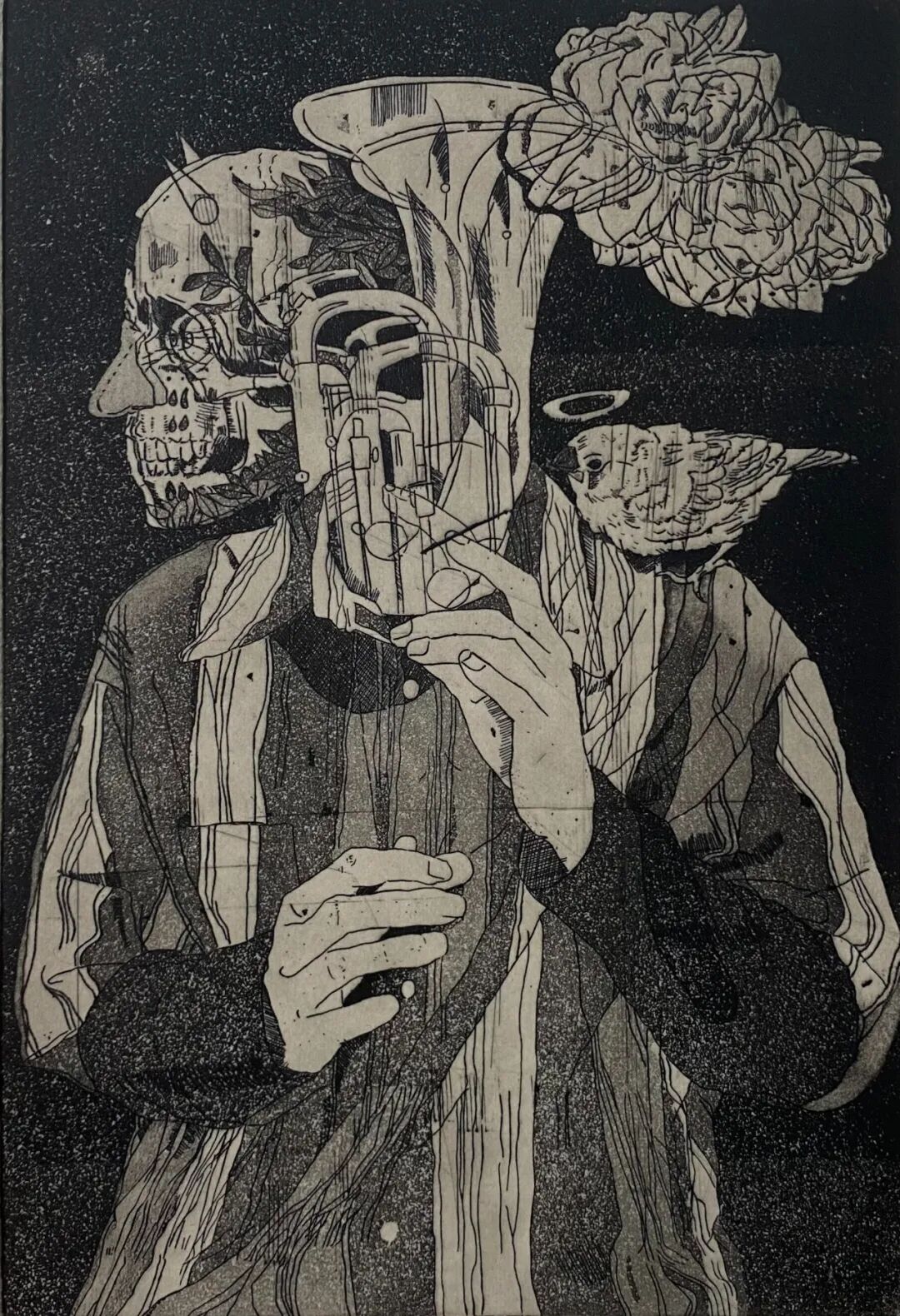 《The funeral of trumpet》Copperplate paper 30x44.5cm 2021