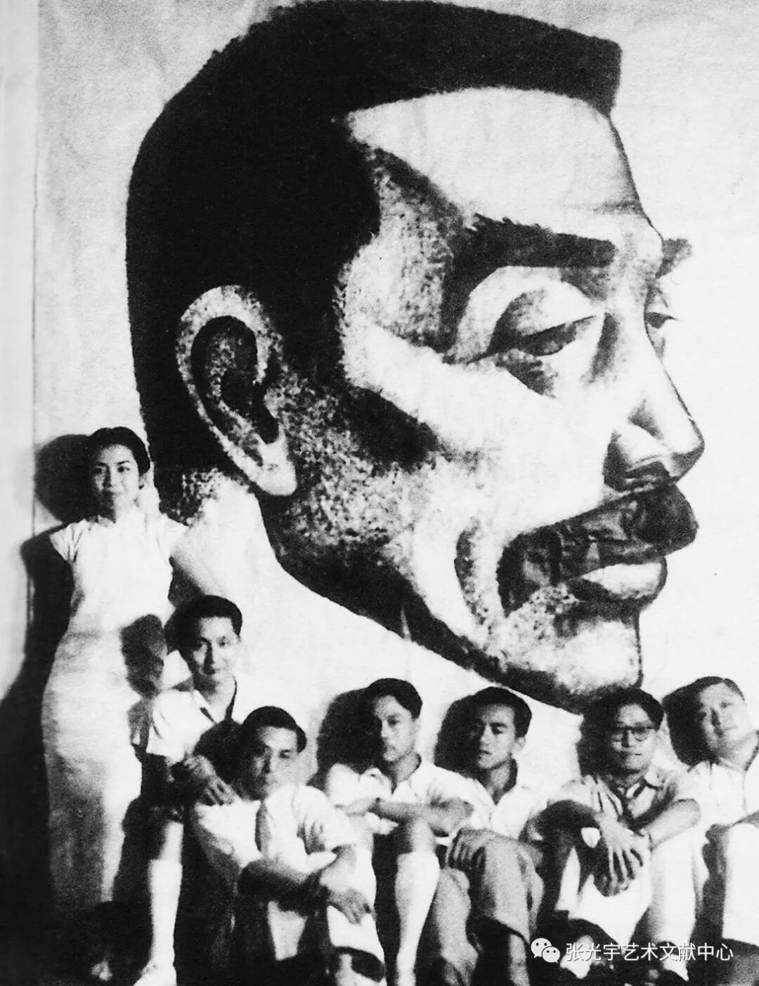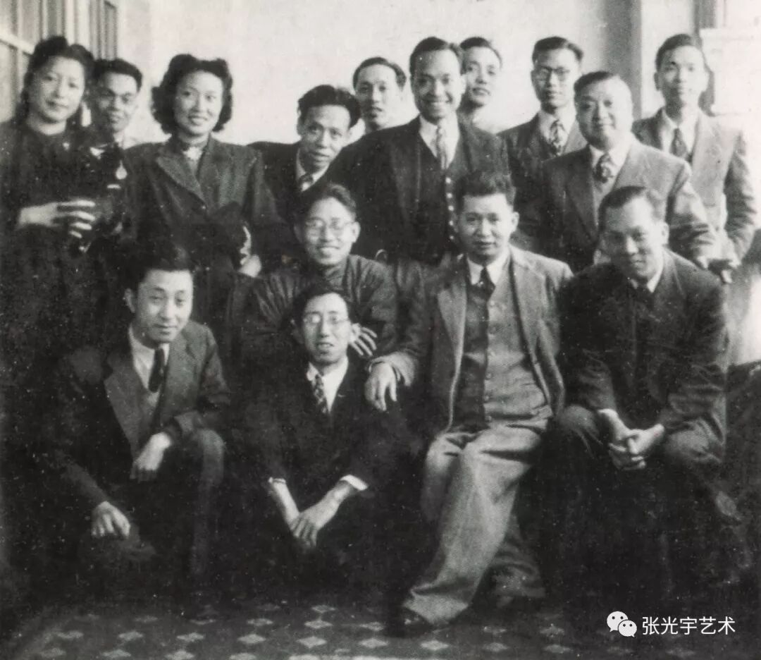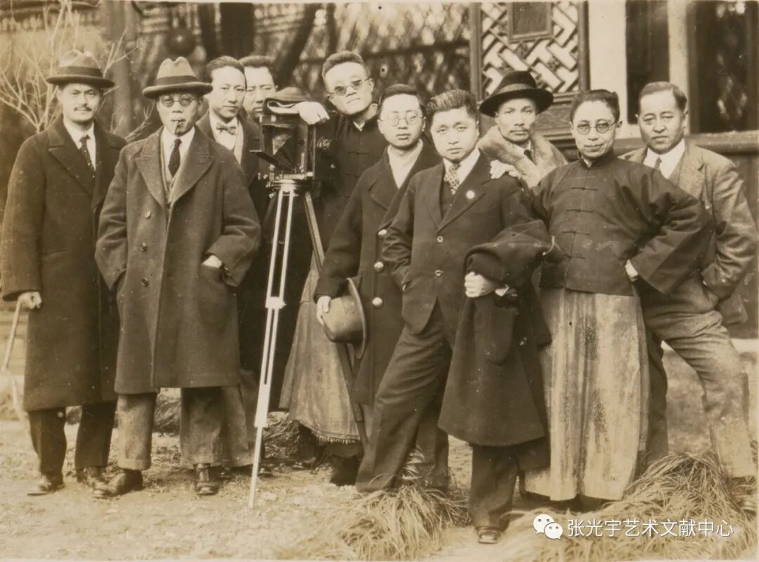 左起:周柏生、郑曼陀、潘达微、丁悚、李铁笛、谢之光、丁云先、张光宇