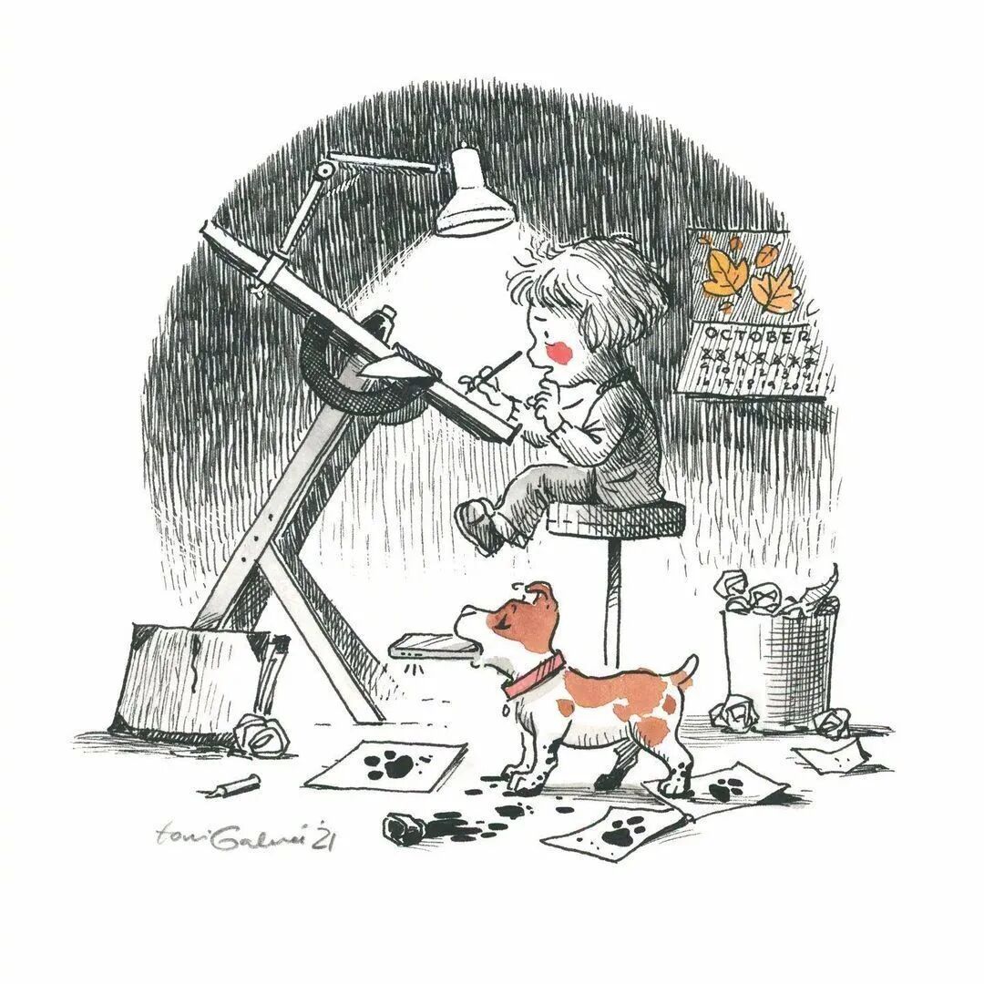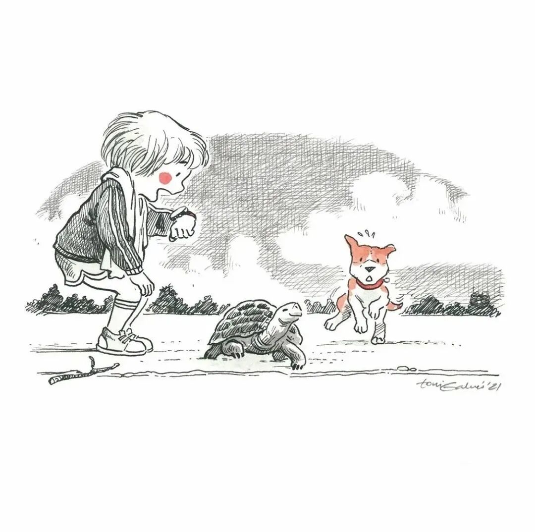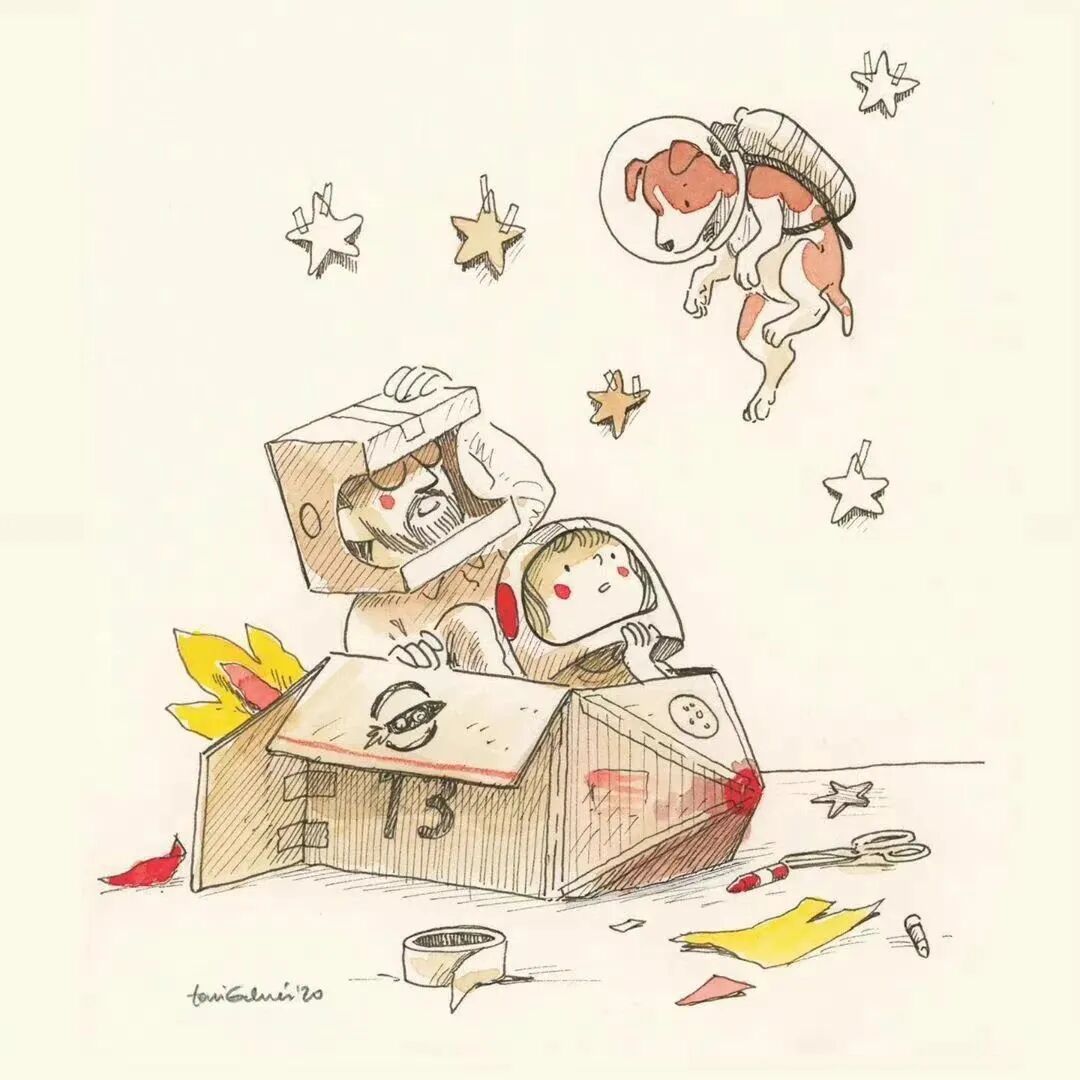 插画师Toni Galmés将生活中发生的一件件趣事,都让它在笔中重现出来,勾勒出美好的童真时光,画面故事丰富且治愈人心,常常能把人带入童年美好的回忆里。