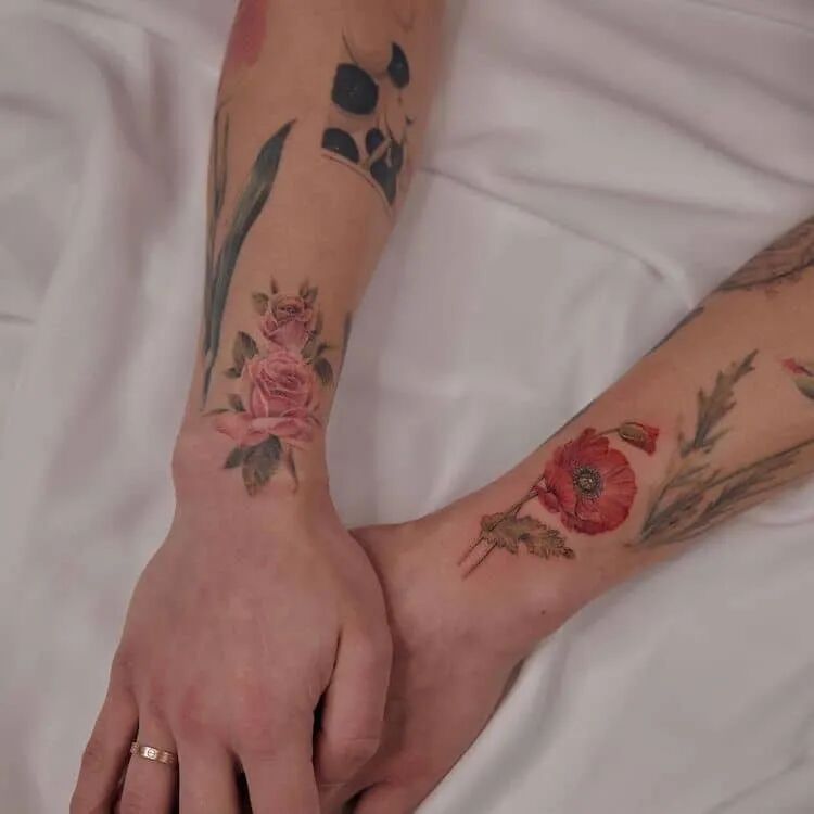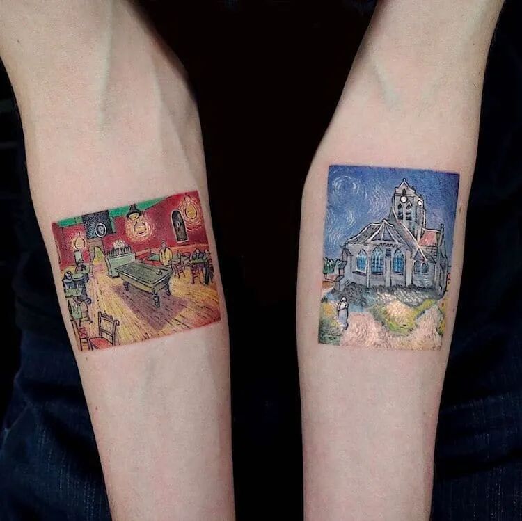 这位艺术家就是来自布鲁克林的伊娃·卡拉布达克,她受艺术史和大自然的启发,设计了一系列精致的纹身图案,从花卉插画到世界名画,每一个作品都格调满满。这位艺术家经常会把图案框在矩形或者圆形的几何图案中,看起来就像一个画框一样,整个作品就好像一幅画,如果不仔细看的话,很多人会误以为这些图案是艺术家用笔画在皮肤上的。