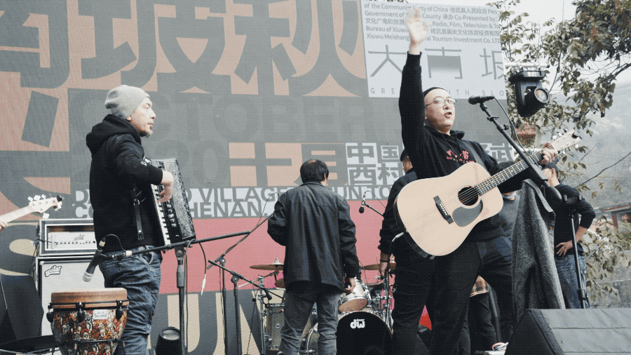 秋兴音乐会前,张玮玮、郭龙排练与村民互动