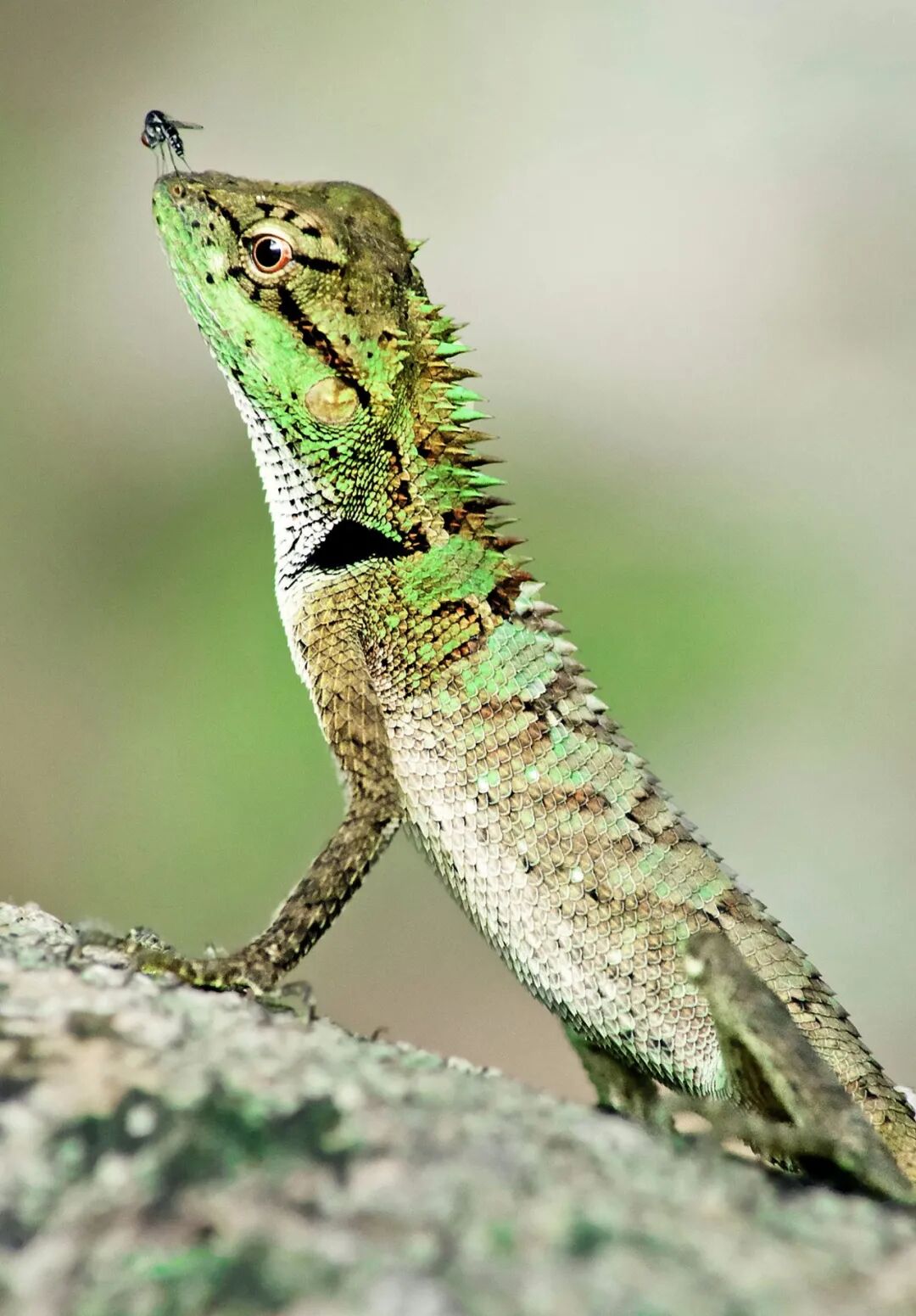 ▲ 一只蜥蜴的鼻子上停着一只蚊子。图/视觉中国