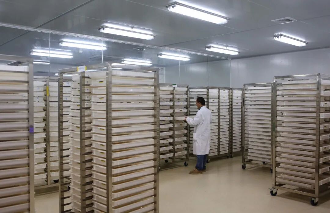 ▲ 蚊子“生产车间”。塑料盘层层叠叠摆了,每个塑料水盘里,有三千多只幼虫游来游去。/视觉中国