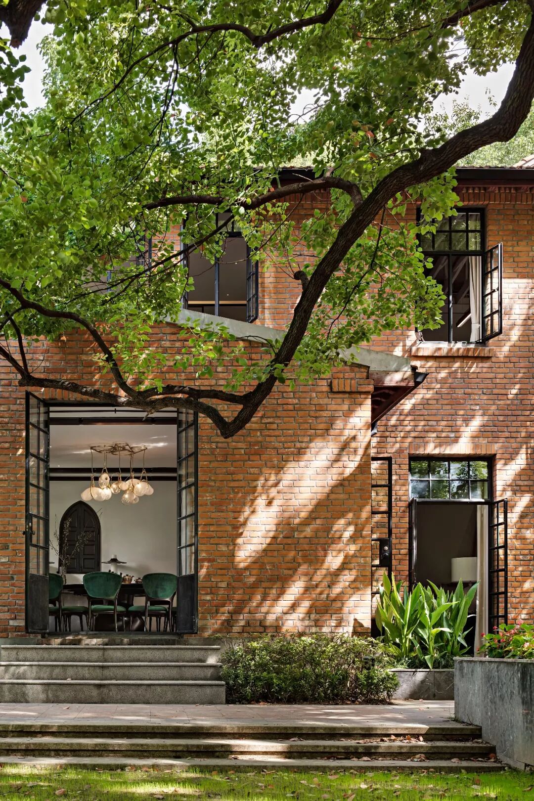 该栋别墅设有多处房门,一打开便是绿意盎然的庭院,伴随着阳光将自然灵气带入室内。室外旁斜逸出的树木枝条与室内的装饰横梁恰好相得益彰,完美衔接成一处田园丽景,让人身处别墅宛若进入到梦幻之境。