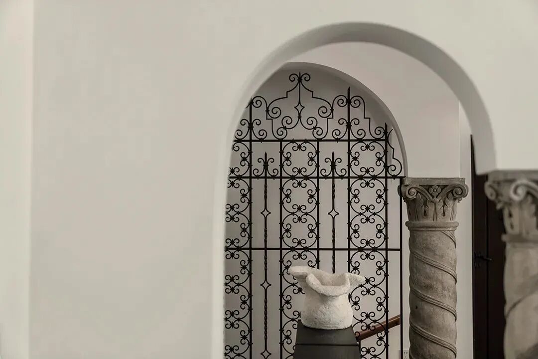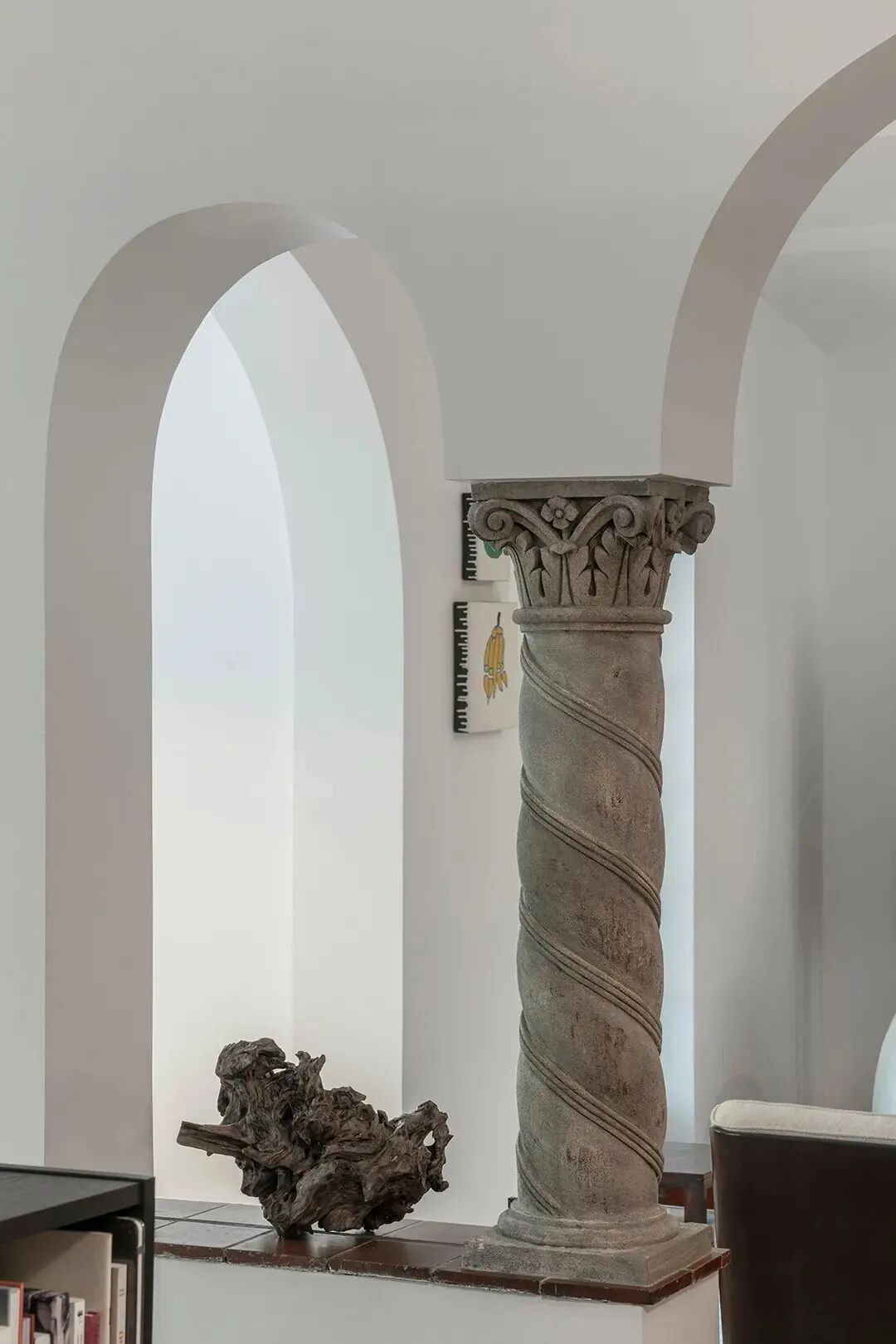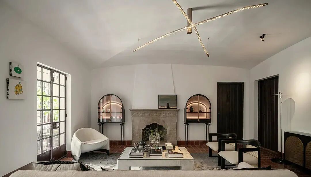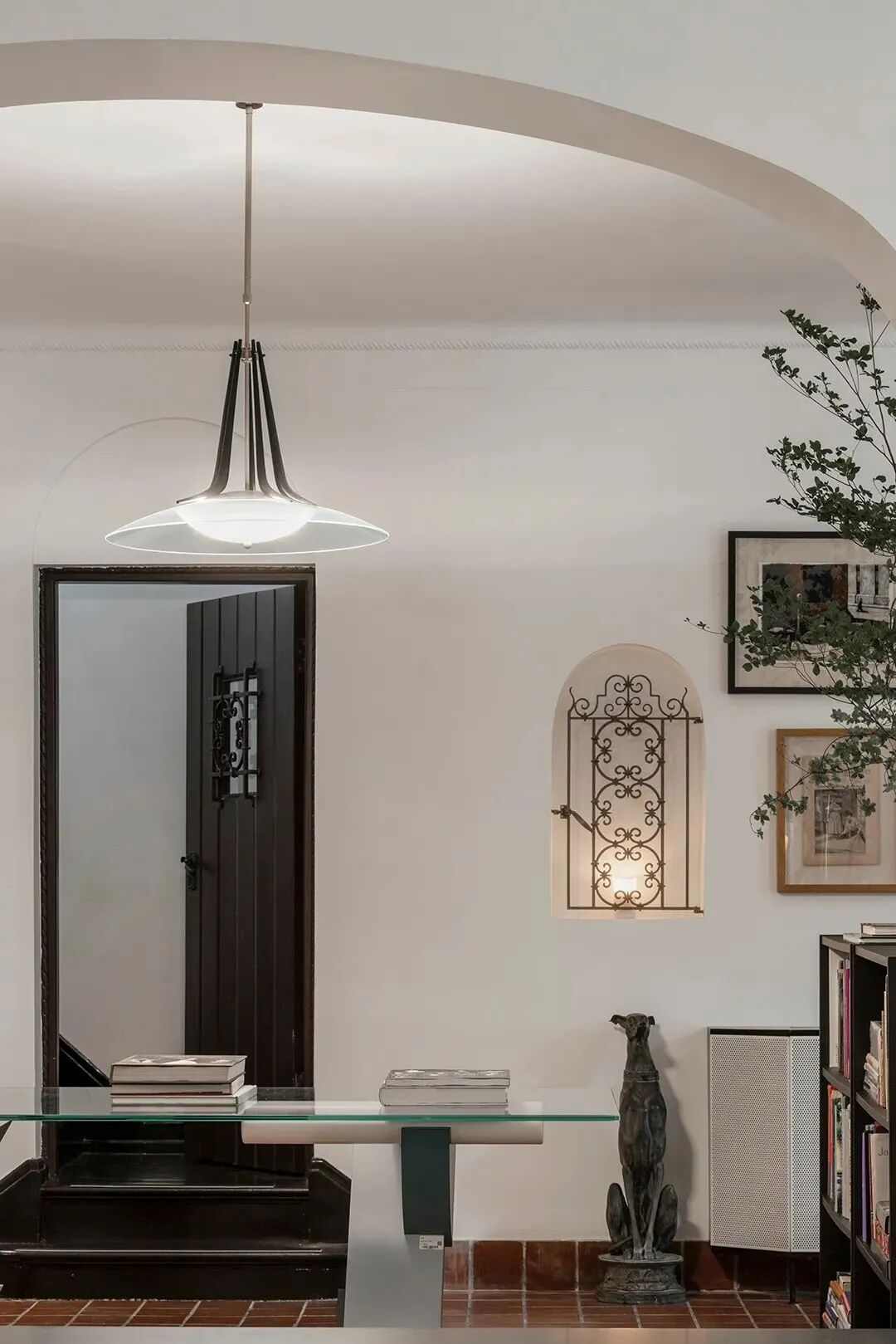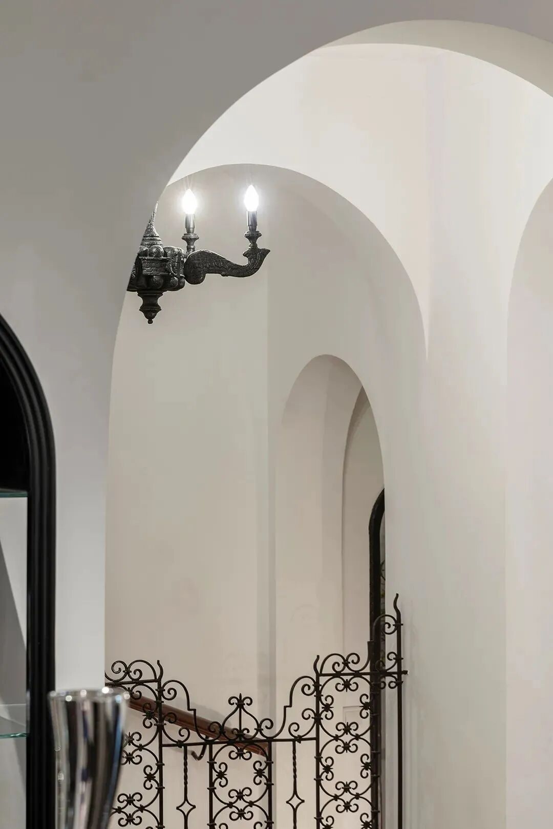 从建筑外观到室内,半圆拱门无疑是设计中最引人注目的亮点,复古的几何线条在路径交汇处划下自由洒脱的一笔,破格又落定,促成双空间的汇聚。