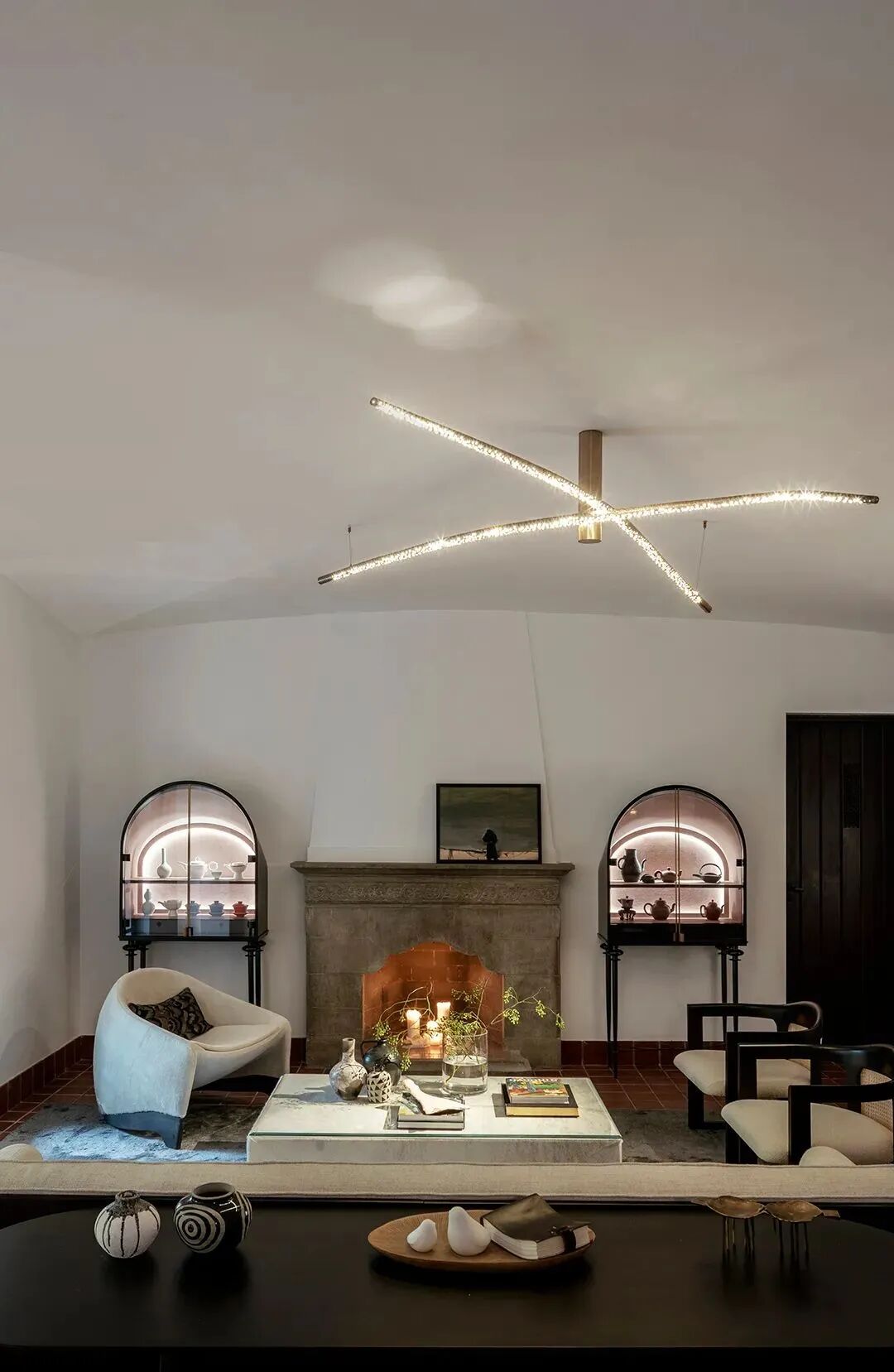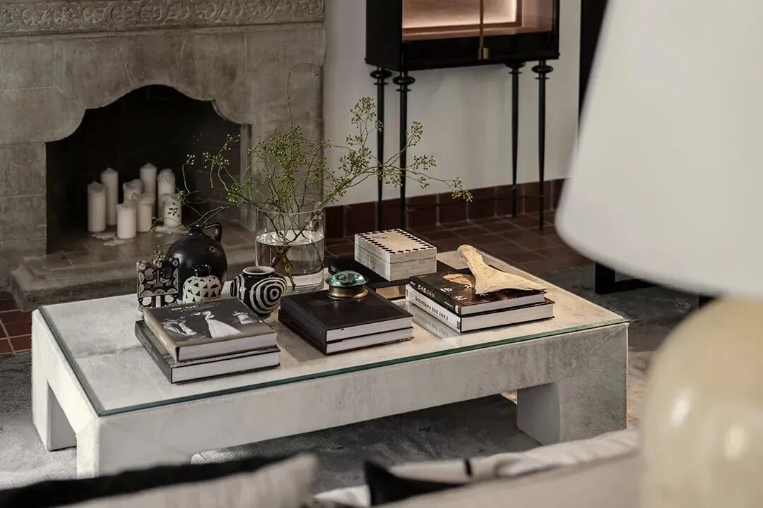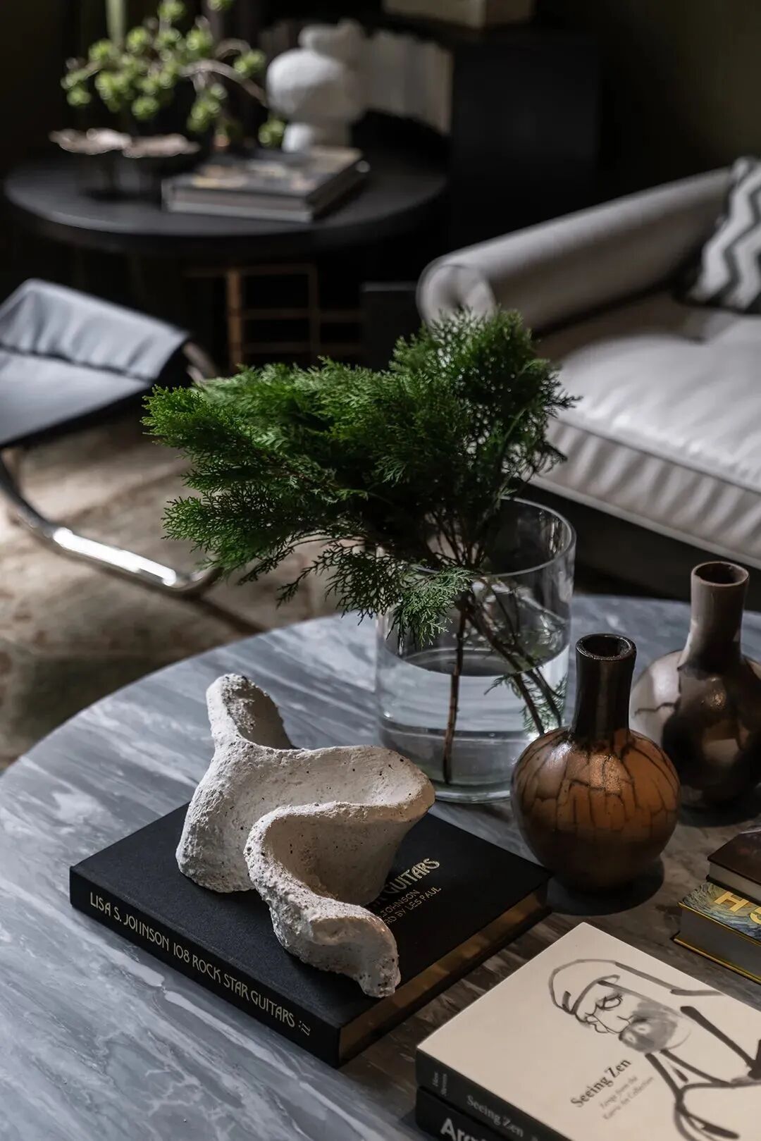 瓶中绿意的枝干与桌面金色动物水晶球摆件为空间注入灵韵,用自然与优雅勾勒出一个如梦似幻的空间。