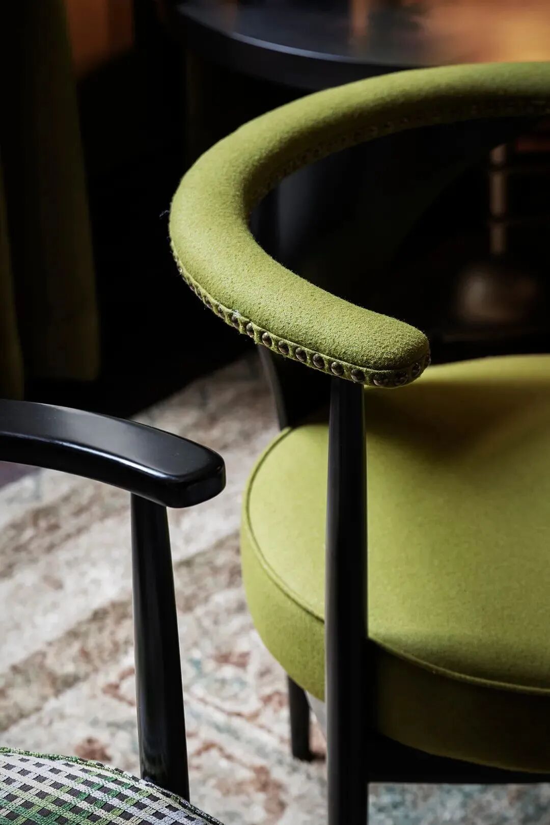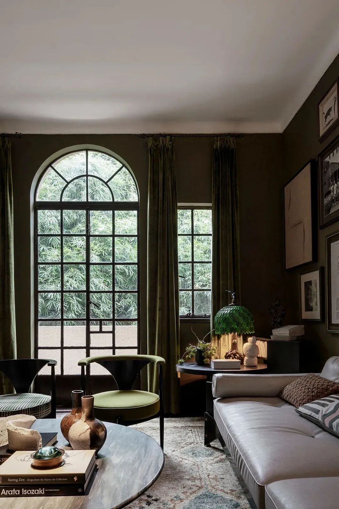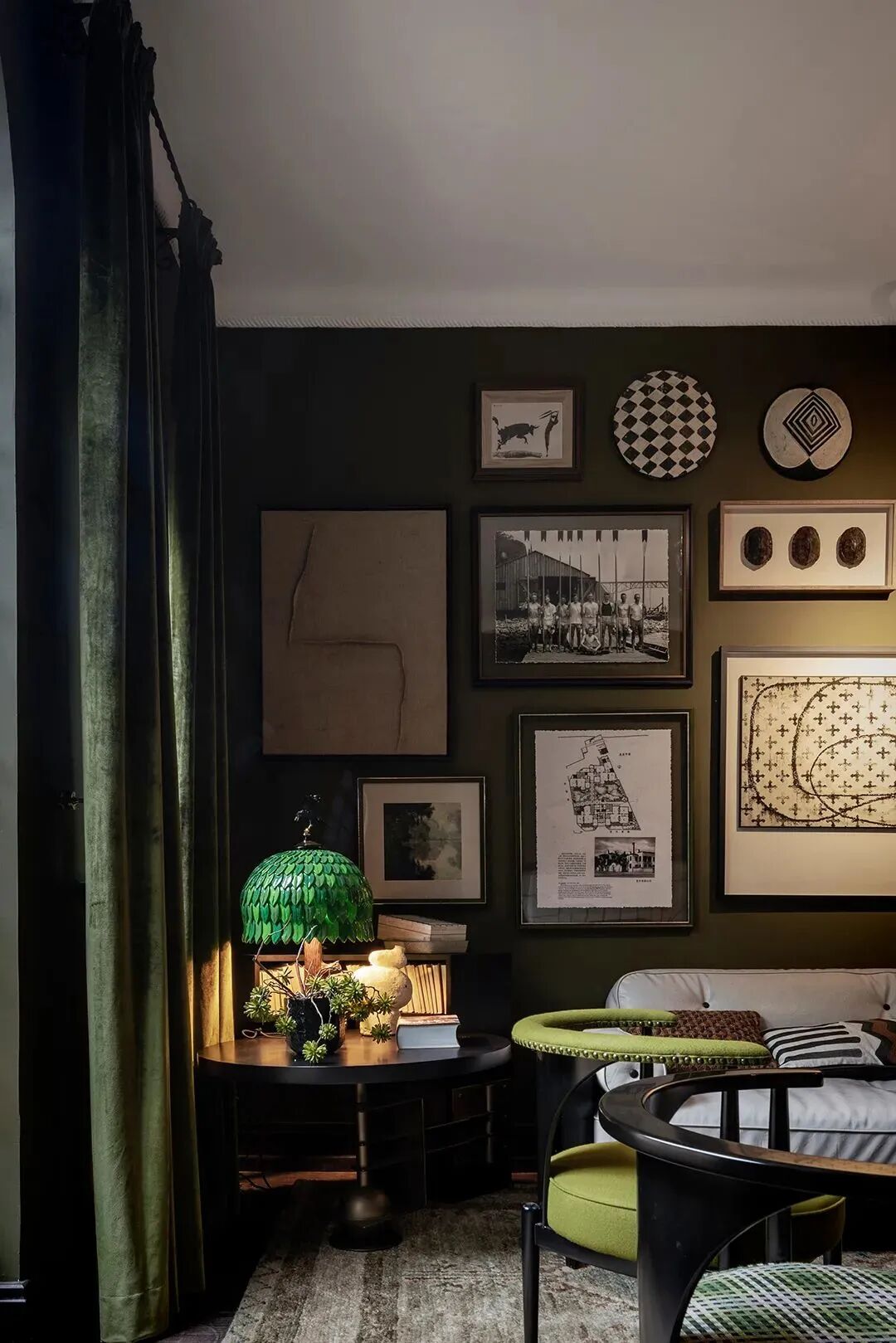 设计师在开放式餐厅汇入大面积的墨绿色,这也是浪漫主义画家但丁·加百列·罗塞蒂毕生钟爱的颜色。它温情而清醇,神秘中带着些许明朗,似幽深林间漫溢出的一抹芳香,在复古格调中自在畅游。