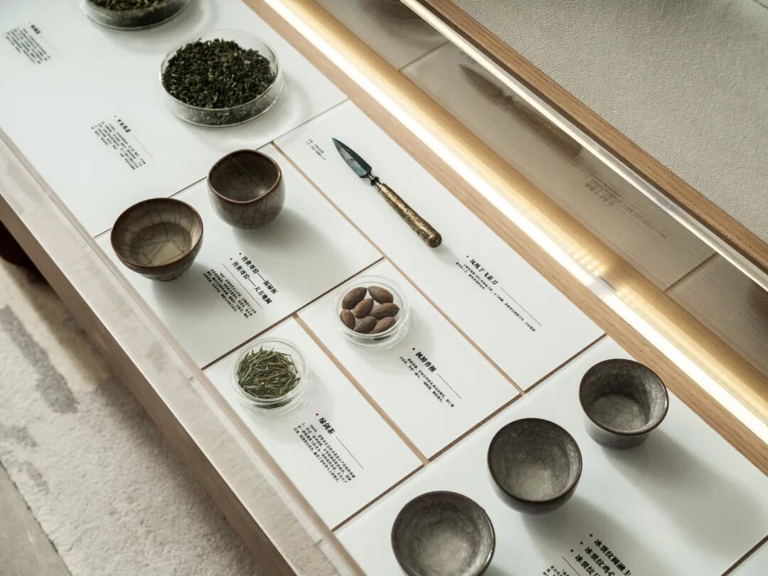 茶文化作为诸暨当地特色,陈列柜中不乏各式各样的茶具,搪瓷工艺茶壶或是锡制茶壶等精致的陶艺器皿,将一座城市的悠久历史、文人气质凝汇。