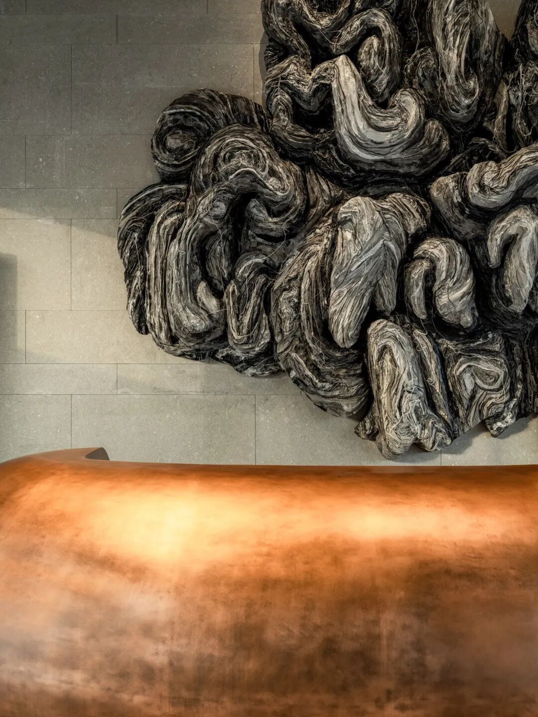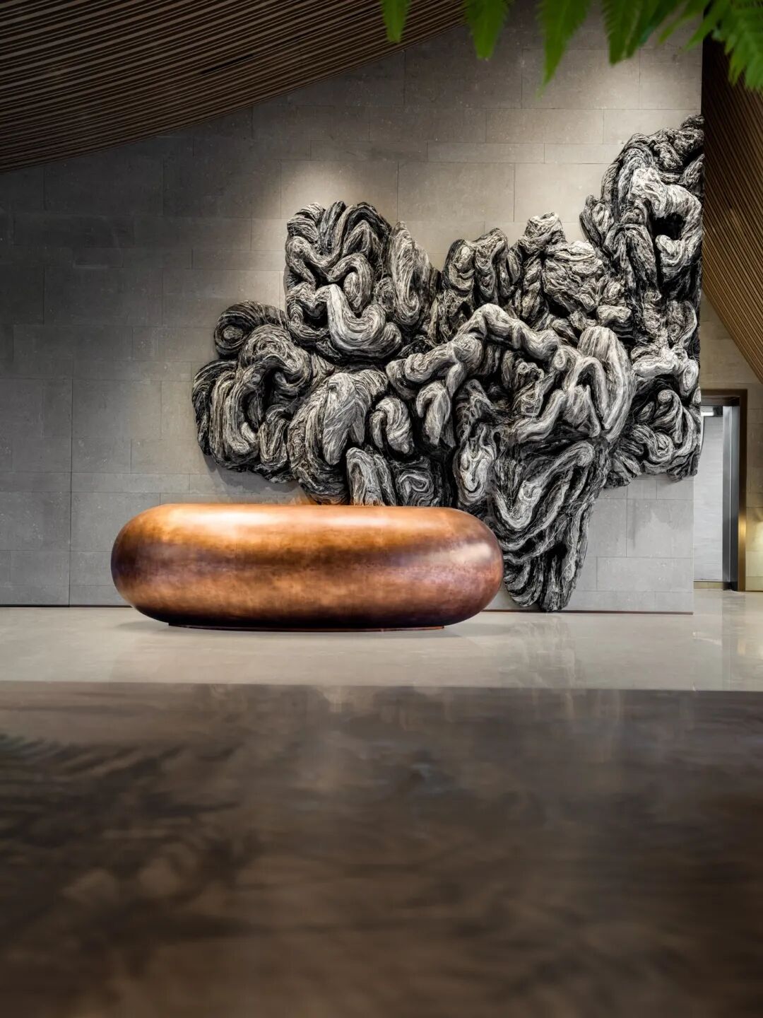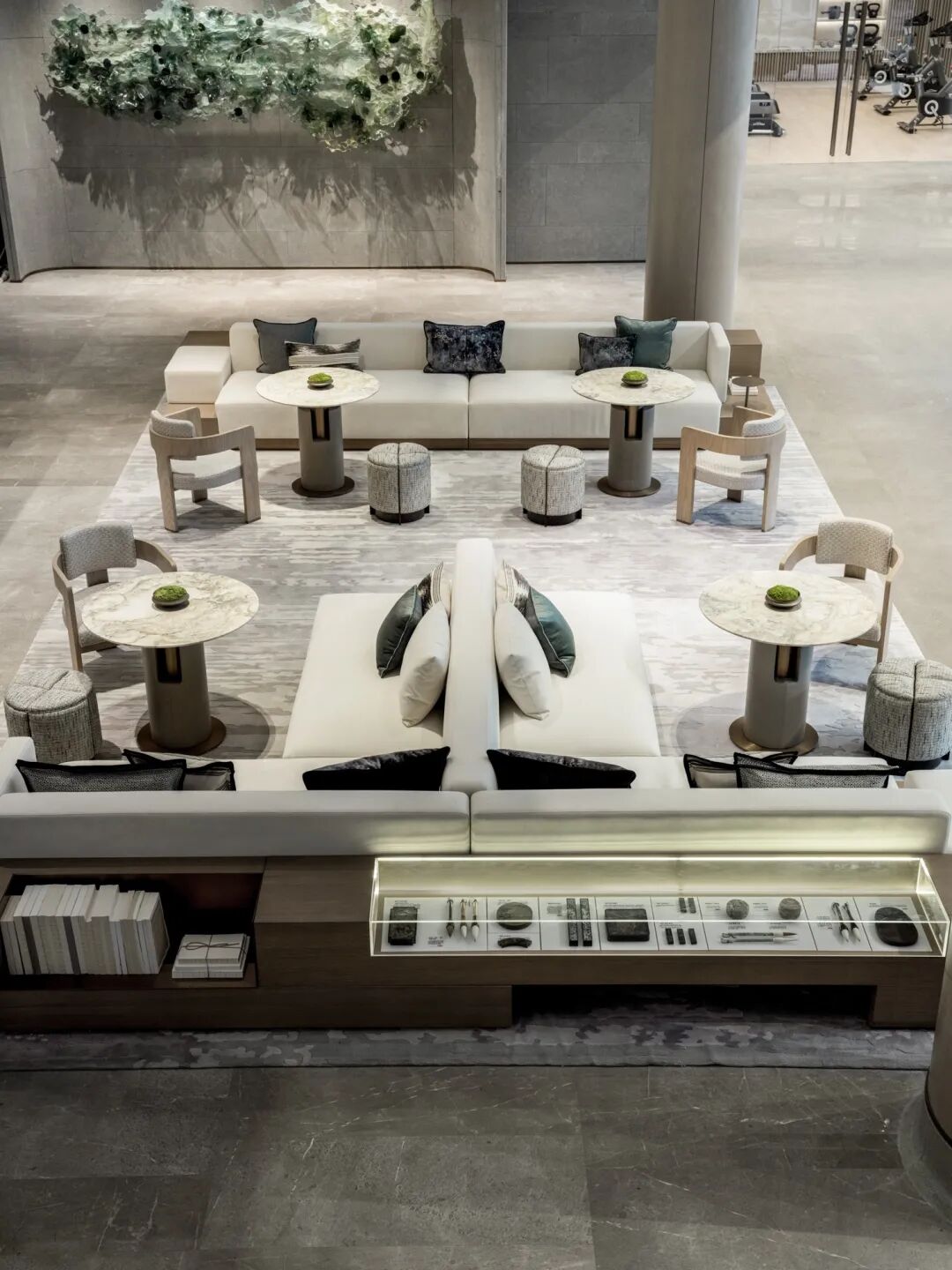 零星苔藓点缀其中,与墨绿的丝绒靠垫相衬,自然质朴的材质构筑空间的纯净,本真的美静刻此处。