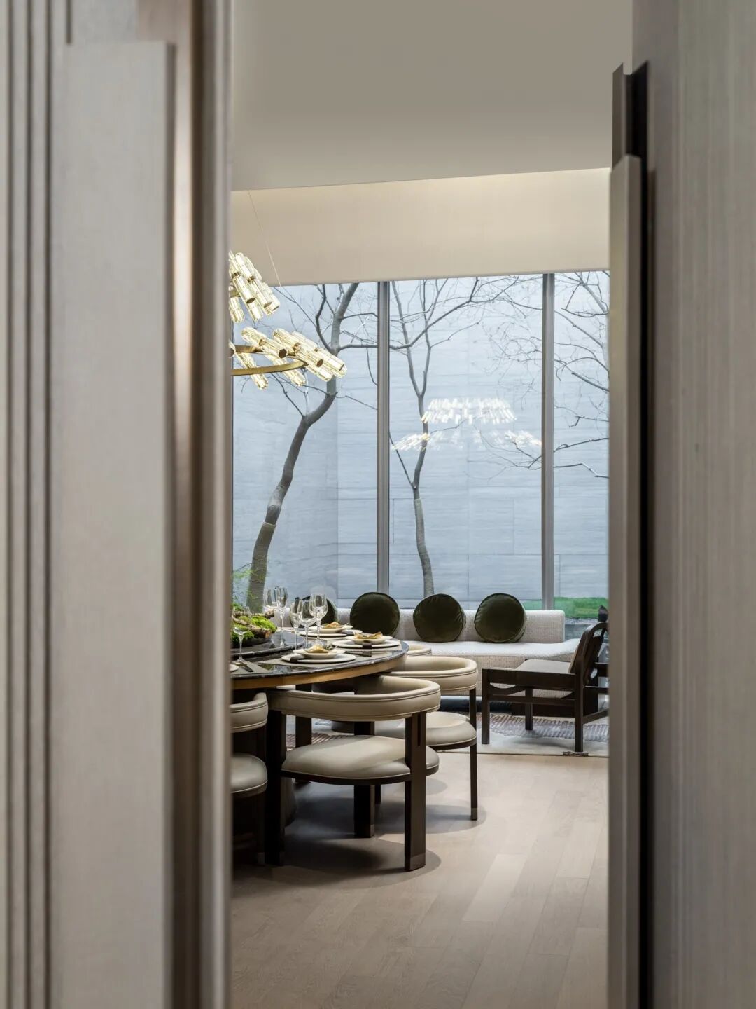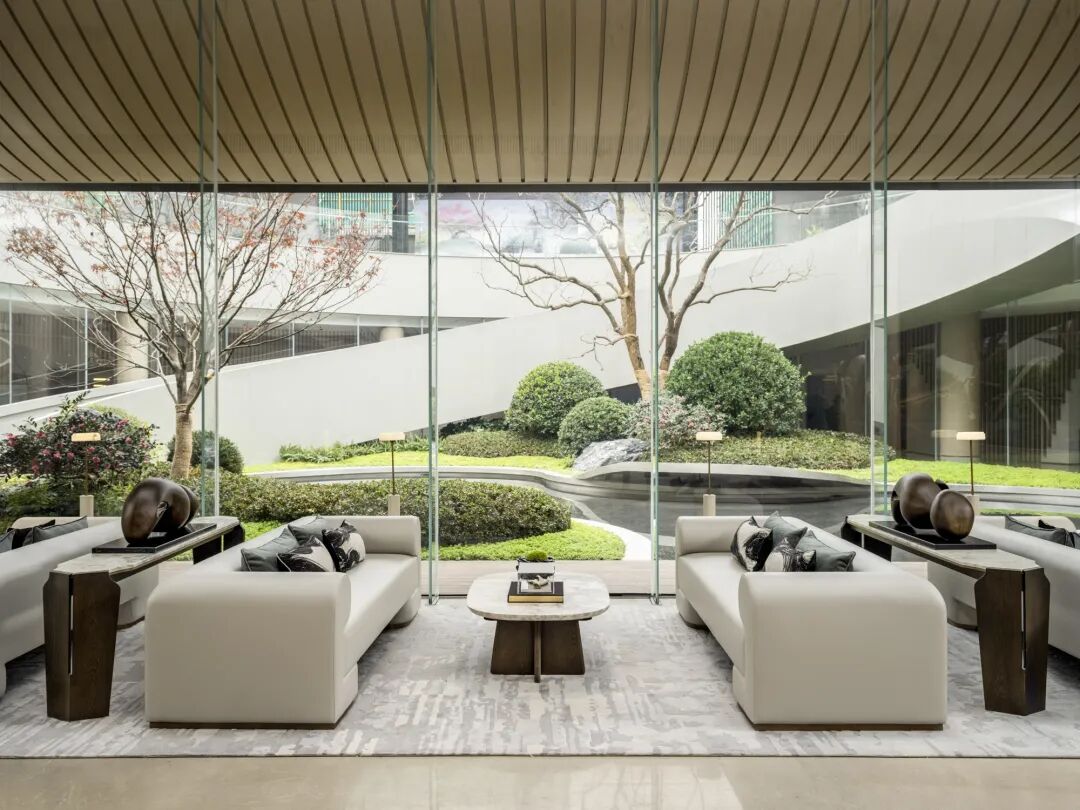 天光自窗洒下,水面倒映,打造一屏一障、园中院,院中园的氛围感,空间更添静谧。