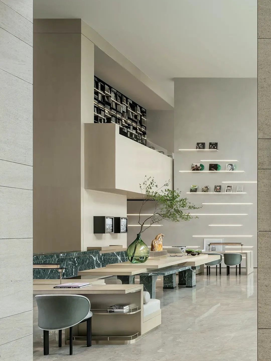 空间氛围书香淡雅,大隐隐于市,在都市中亦可获得内心的升华,繁忙的都市生活,也能因为有一处沉浸之处,而自平凡中生出诗意。