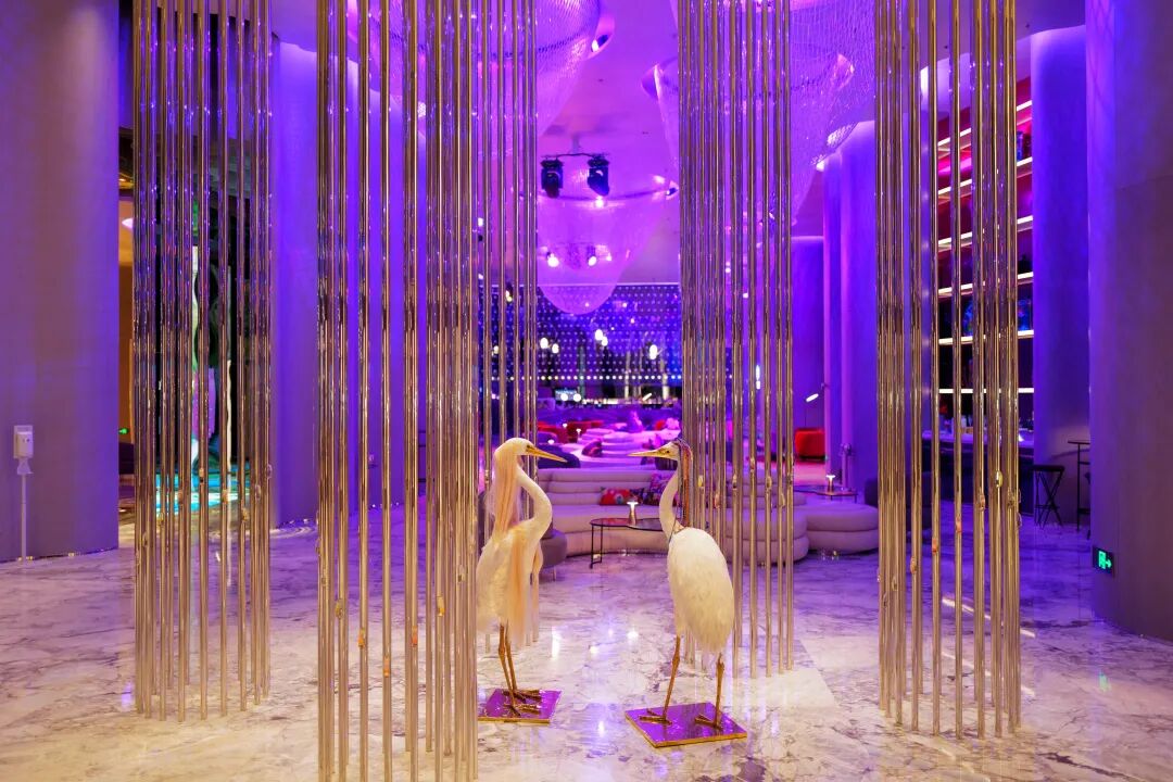 ▲ 酒店玄关处以管风琴造型的金属灯光装置,礼赞厦门的音乐情缘(鼓浪屿的琴岛别名和管风琴博物馆),用一对装备超酷的白鹭兼顾厦门的鹭岛美誉和W个性潮流的精神。