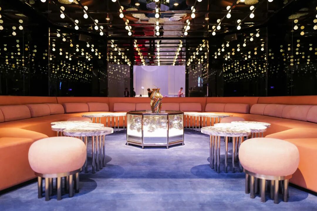 潮堂四周还暗藏一些玄妙俏皮的笔触,有晶莹剔透的包间、有剧院换妆间般的「潮堂秘室」、还在洗手间里修筑了一座帆船造型的化妆台。