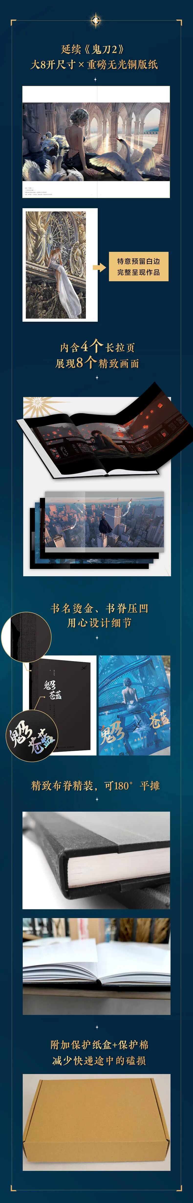 《鬼刀3》适合绘画爱好者欣赏,也适合相关艺术从业者收藏与临摹。本书的装帧考究,设计、印刷均为珍藏级别,大8开、4个长拉页、精装画集、精美印刷,展示画面细节和质感,再现恢弘壮丽的诺拉大陆,献上视觉上的饕餮盛宴!