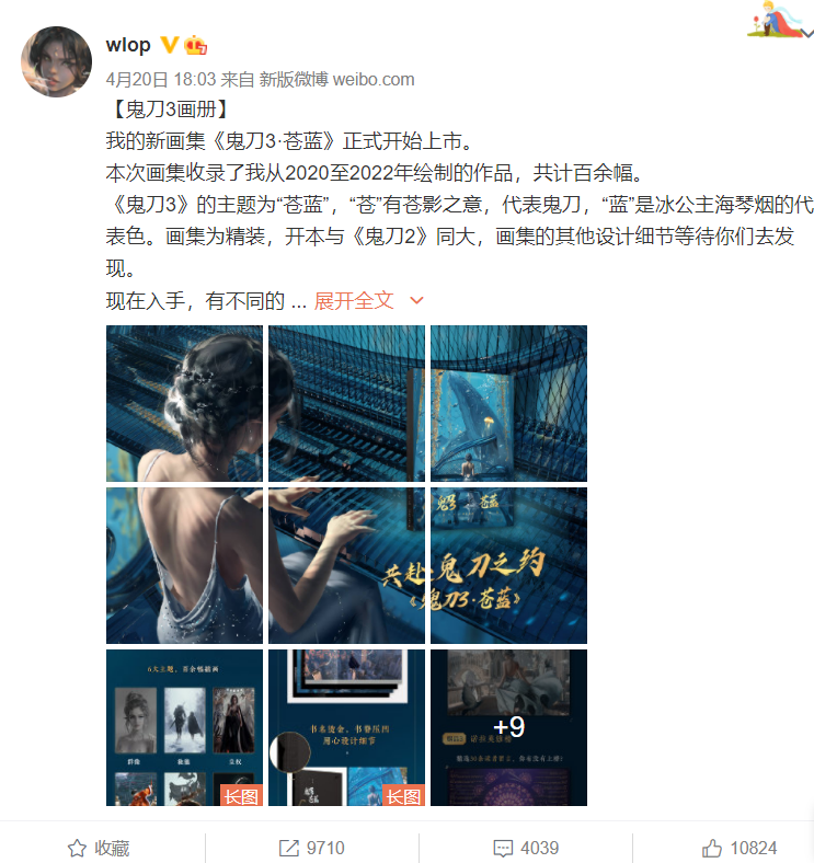 《鬼刀3·苍蓝》收录了WLOP近两年的全新作品