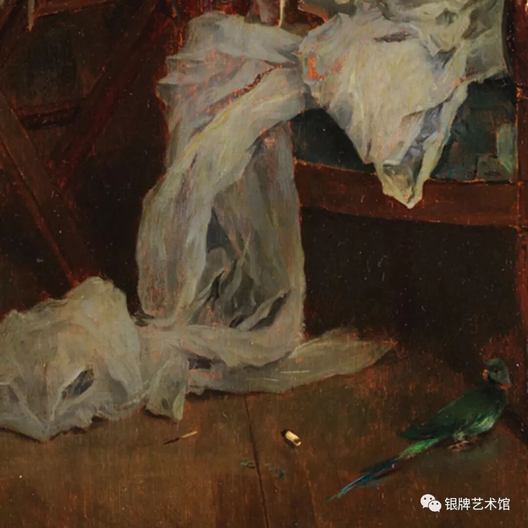 在它们旁边,有一只鹦鹉,它象征着模仿行为,就像鸟儿模仿人类的语言一样,艺术家也通过作品来映射生活。