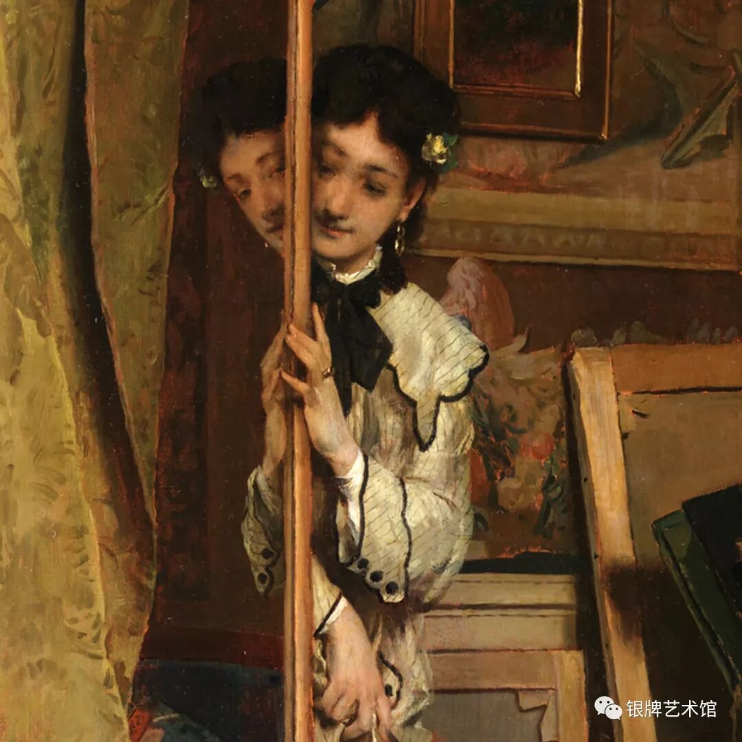 大家好!今天给大家介绍比利时画家史蒂文斯创作于1871年的油画作品《我的工作室》,这幅油画收藏于普林斯顿大学美术馆。