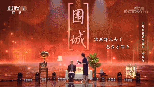 开合屏的舞台设计,延伸出气氛,围城封面文字加上暖色背景,好像观众手捧《围城》,在昏黄的路灯下如痴如醉地读书,感受着《围城》的语言之美,思想之美。