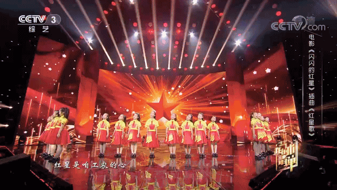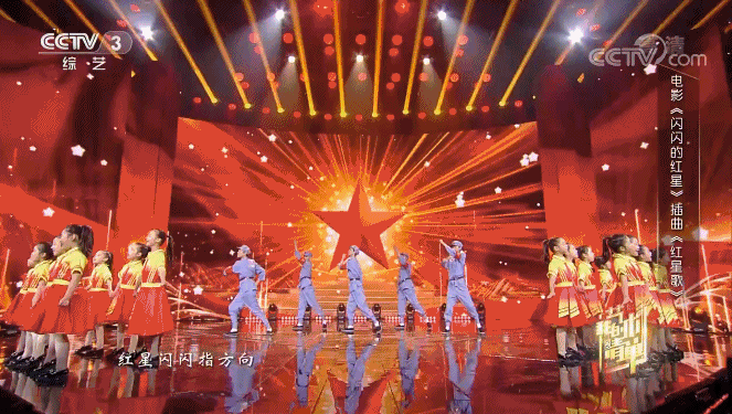 电影《闪闪的红星》主题曲在舞台上唱响,观众可能对电影比较陌生了,但舞台上以红色的粒子打造出闪闪放光彩的红星,让人油然而生激昂奋进的英雄主义情怀。