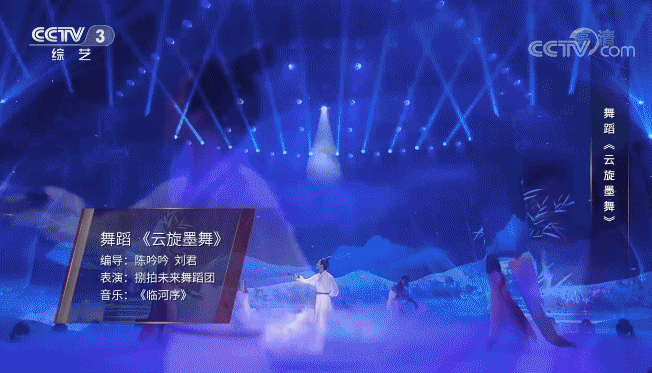 在学习书法过程中,《怀仁集王羲之圣教序》是他临得最多的。歌舞《王羲之(书圣)》,以蓝色背景,勾勒出书法意境,看白色的文字挥洒在舞台上,观众感受到书法给人以温柔、安静的力量。