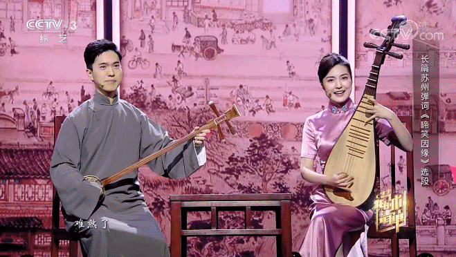 长篇苏州弹词《啼笑因缘》是苏州评弹表演艺术家姚荫梅在张恨水同名小说和陆澹庵的苏州弹词本的基础上改编而成的一个作品。盛小云拿着琵琶和三弦,一招一式地讲解评弹的舞台规矩。舞台以北洋军阀统治时期为背景,车水马龙、复古建筑让观众更真切的感受到故事发生的时代背景,更容易理解评弹传统的“说、噱、弹、唱”如何表现“悲剧”。
