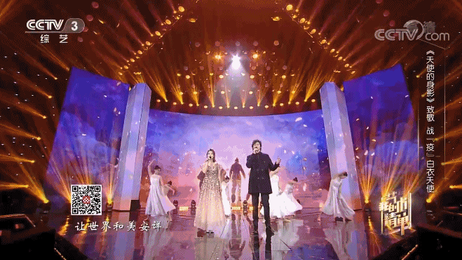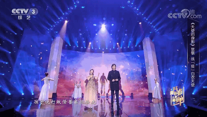 冷色的插画出现在舞台上,好像天使隐藏在某个角落,当我们需要他们的时候,他们会第一时间出现在我们面前。这就像冲锋陷阵在前线的医务工作者,守护着我们的生命安全。