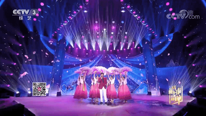 作为朝鲜族姑娘,赵扬玉也有很深的乡愁。舞台上出现的朝鲜族元素,亲切又温暖。飘零的花瓣,蓝色的背景似绸缎,很好的诠释出民歌《阿里郎》端庄、文雅而细腻。