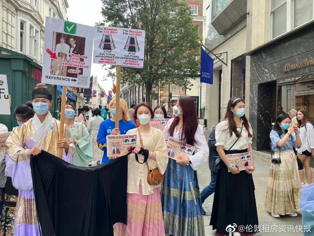 此事在国内和国外都引发了巨大的热议,部分中国留学生在巴黎迪奥旗舰店附近,手持标语抗议近期迪奥对中国传统服饰马面裙的抄袭。