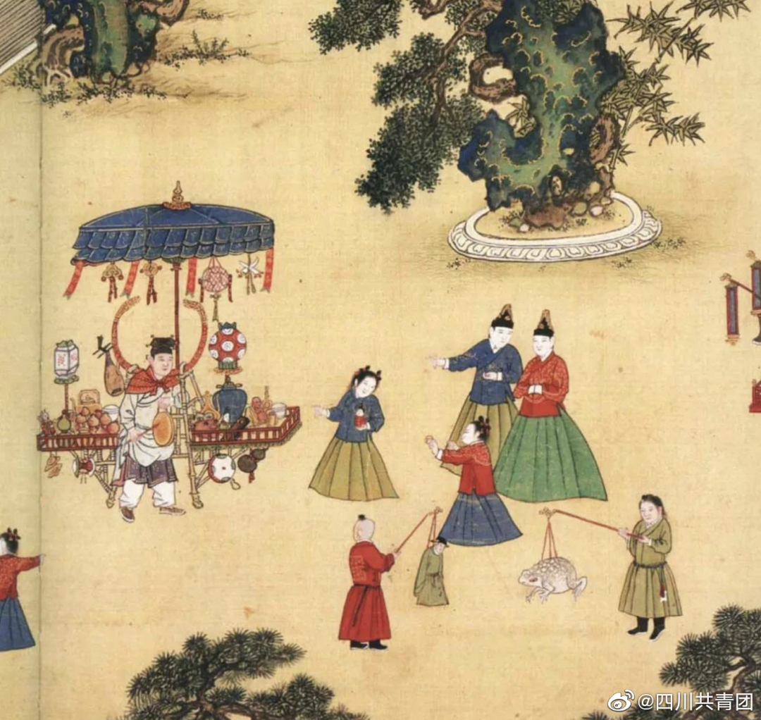 在古代《明宪宗元宵行乐图》中,也随处可见马面裙的身影: