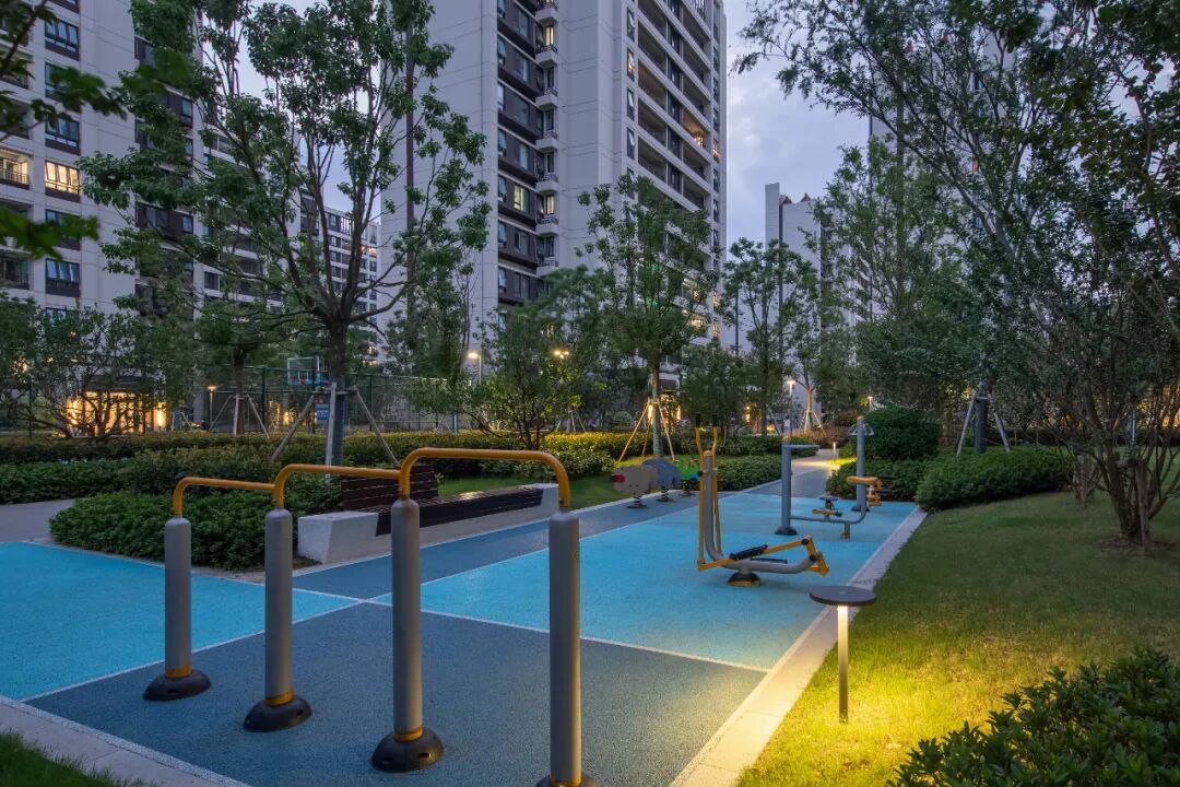 苏州旭辉公元·萃庭以共享客厅、儿童乐园、运动场地为三大核心景观为空间布局,在其他宅间设置与植物相结合的小型功能场地,如林下广场、一米菜园、植物科普花园,利用环形慢跑道将各个功能空间有机串联,从而呈现社区的多功能性场地。