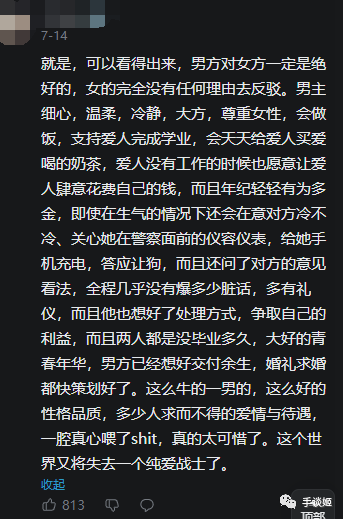 最后,作为一名纯爱战士,手谈姬希望小伙子能尽早从伤痛中走出。这事儿给手谈姬伤的也不轻,该去找点纯爱片补补了。什么?姬没对象暂时不用担心被戴绿帽?哭哭哭哭——