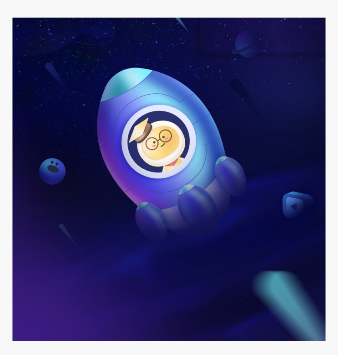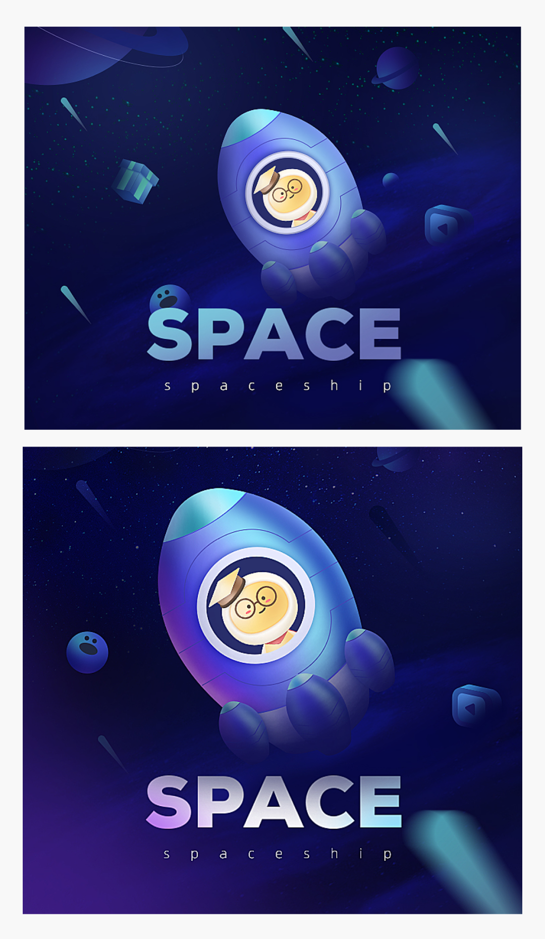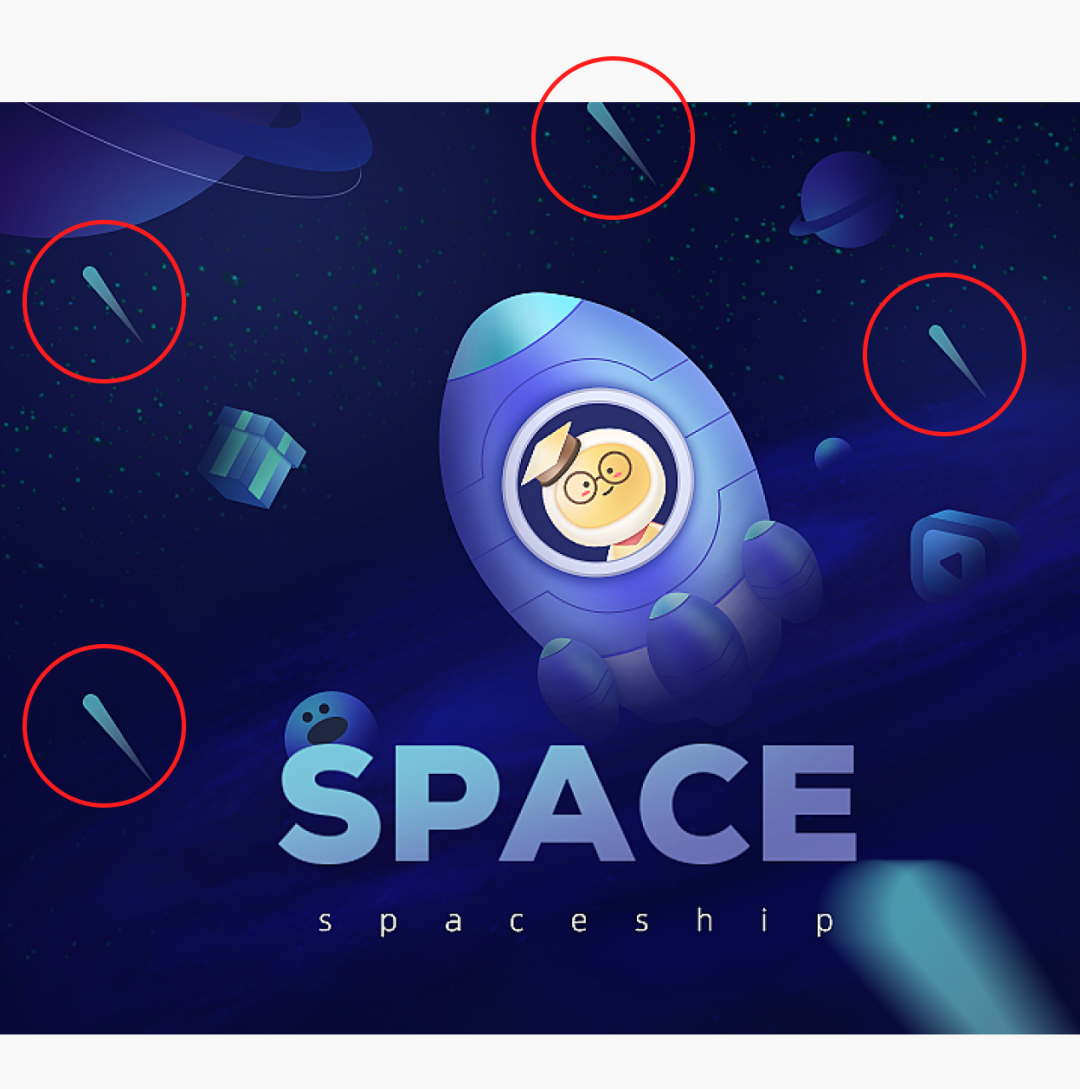 02 后面元素(比如星球)有点太抢眼了,干扰最前面的主体物了,可以适当降低它的层次。