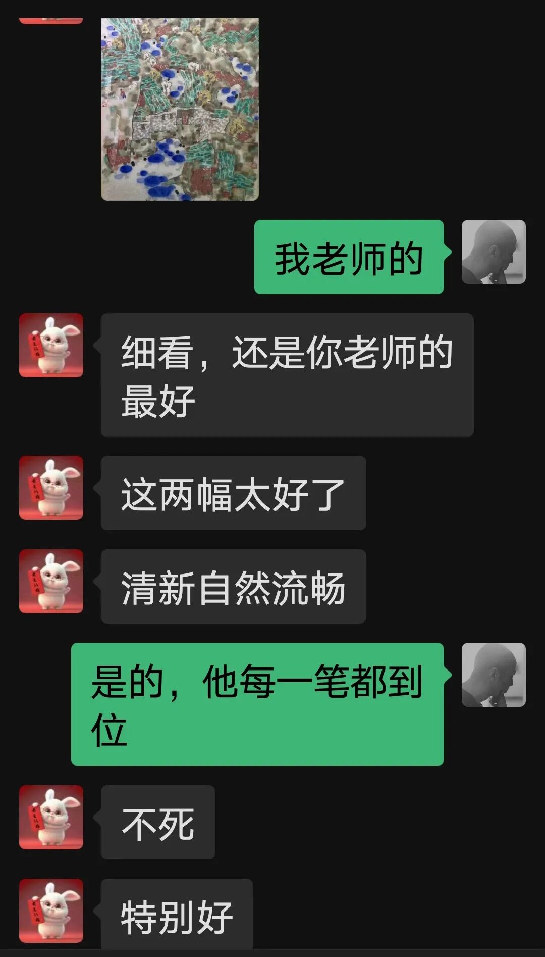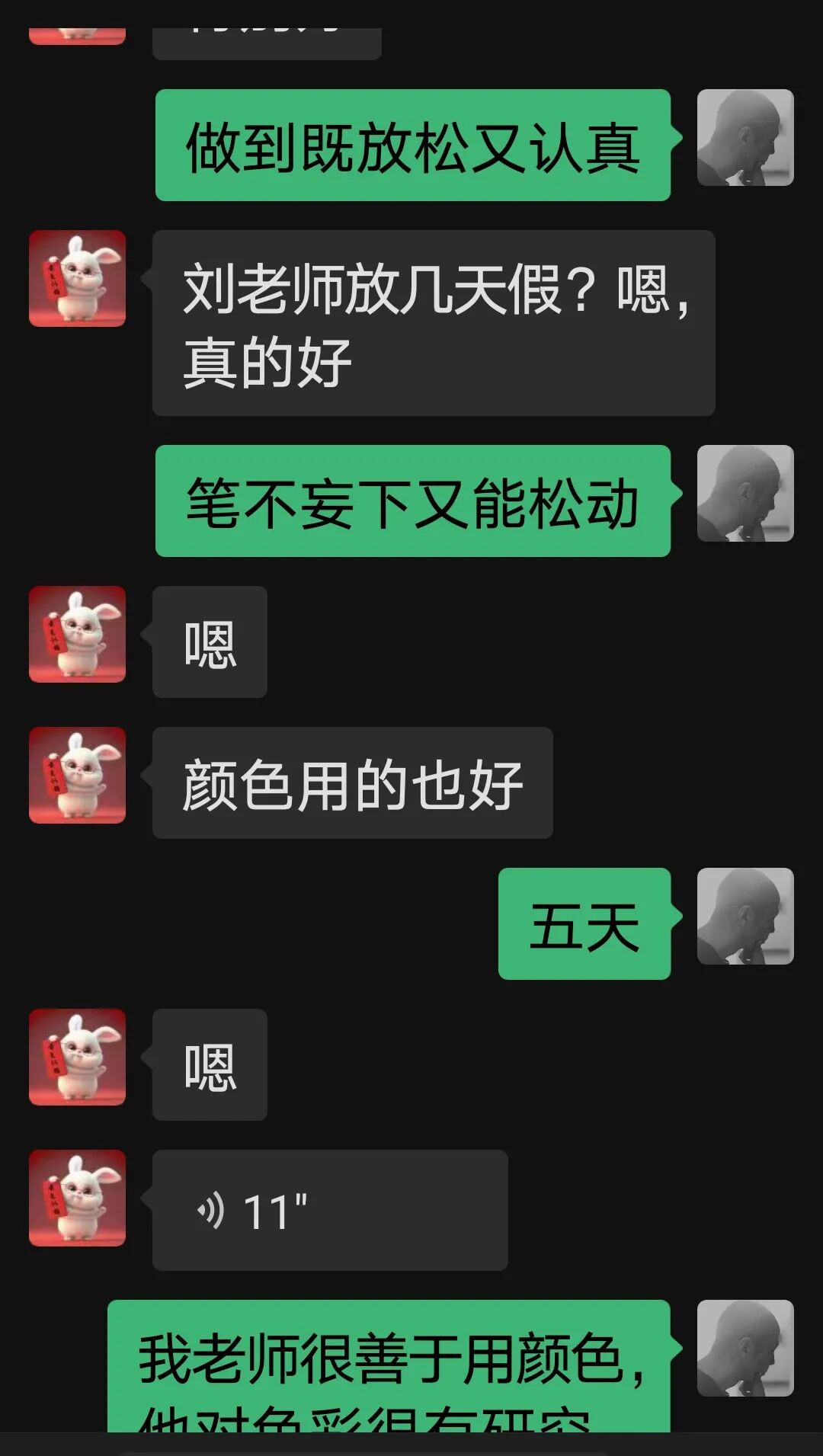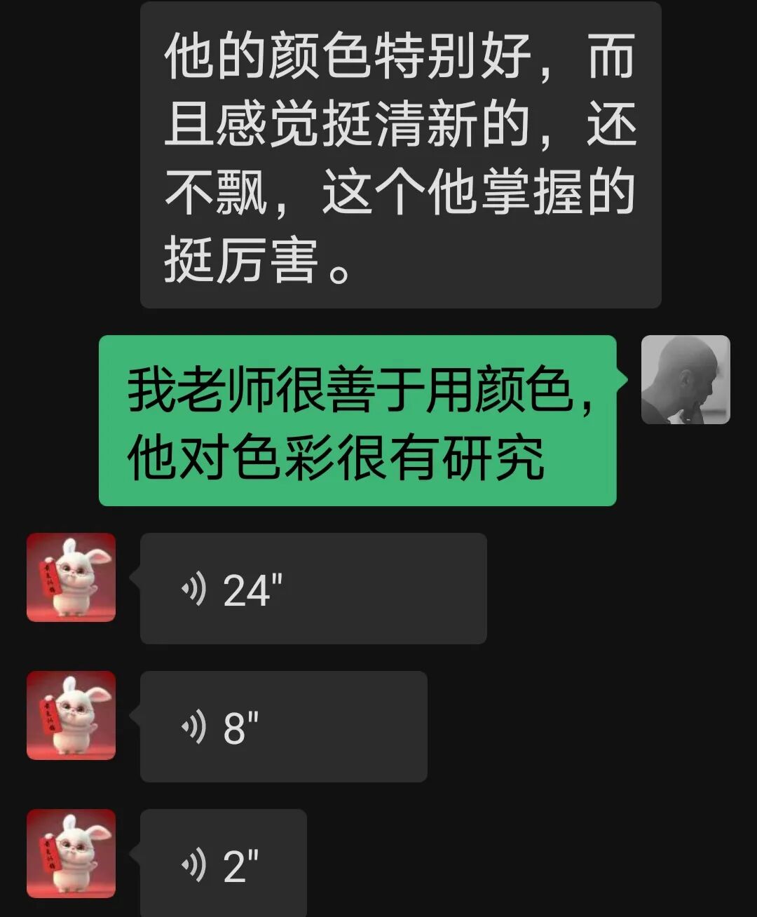 如果我学我老师,我就反老师,颠覆老师,同他反着来。同他这个正相反,全用那种鲜艳飘的那种颜色,刺目醒目,让人远远的就映入眼里的那种颜色,也会形成一种别具一格儿的感觉。