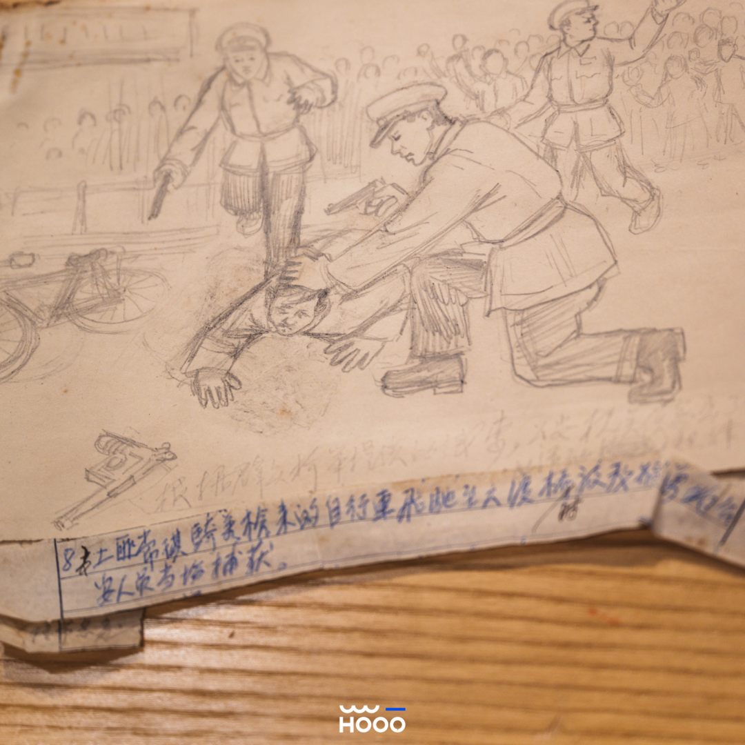 警官画的连环画很有意思,讲的是一个叫常琪的土匪假装官兵,频繁偷枪抢劫,在六渡桥被抓进公安局的故事。