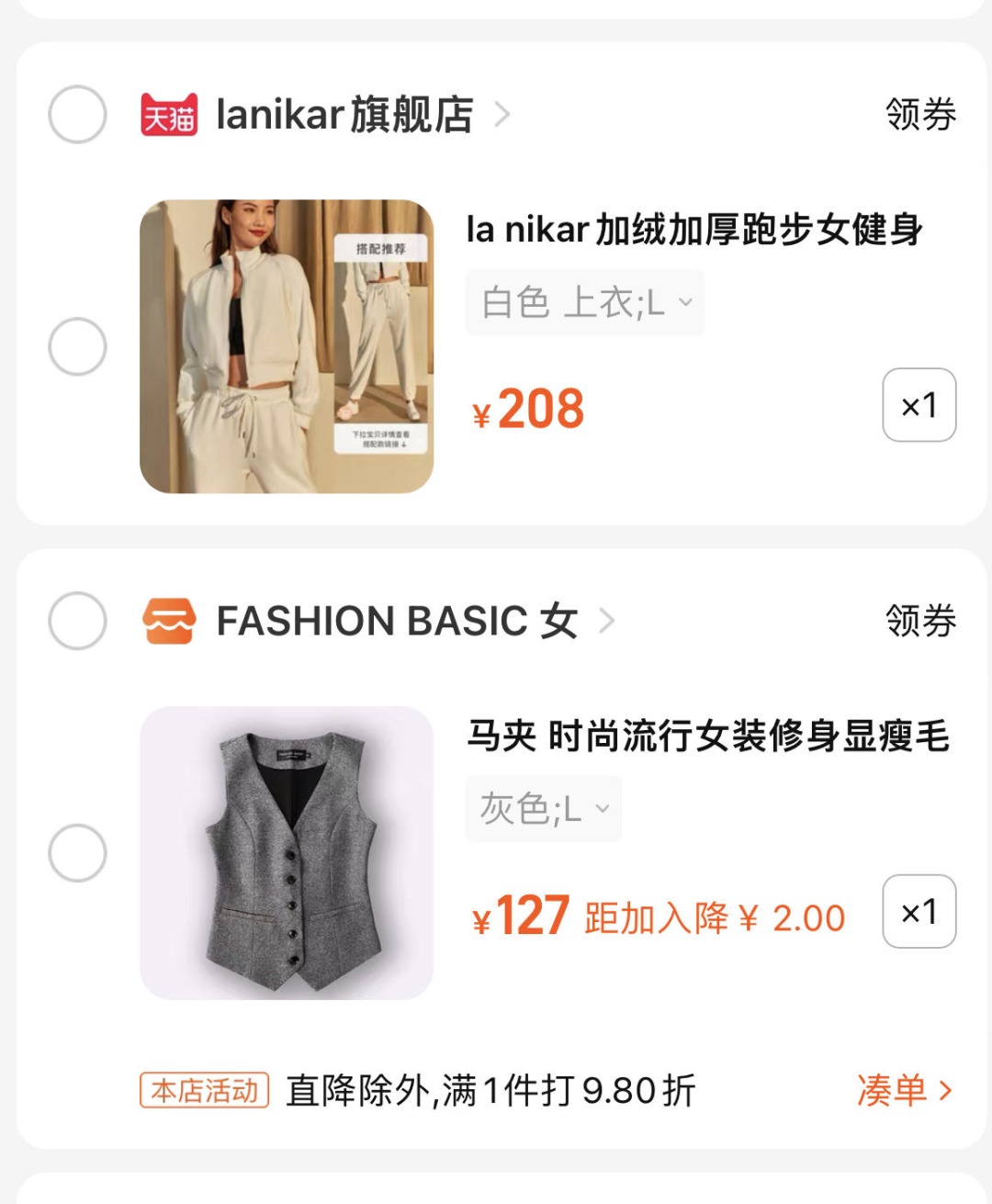 她退休之后最喜欢的类别是针织衫,购物车里长袖的、短袖的、套头的、开衫的一应俱全,穿着舒服也符合她低调的性格。