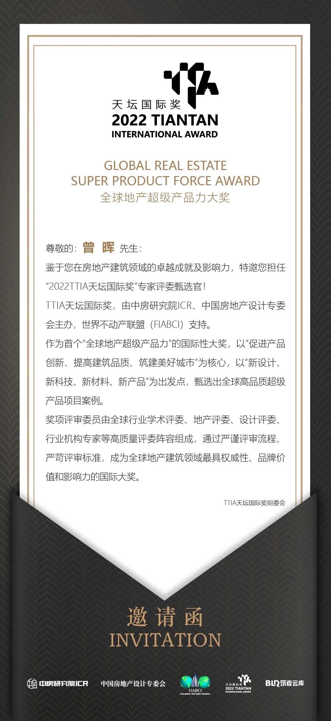 7月,UADI联建设计董事长、主持设计师曾晖特邀成为2022TTIA天坛国际奖的专业评委,我们期待与行业优秀同行进行对话,共谋行业未来。