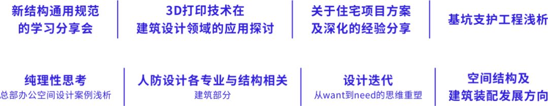新结构通用规范的学习分享会3D打印技术在建筑设计领域的应用探讨关于住宅项目方案及深化的经验分享基坑支护工程浅析纯理性思考——总部办公空间设计案例浅析设计迭代——从want到need的思维重塑人防设计各专业与结构相关-建筑部分空间结构及建筑装配发展方向