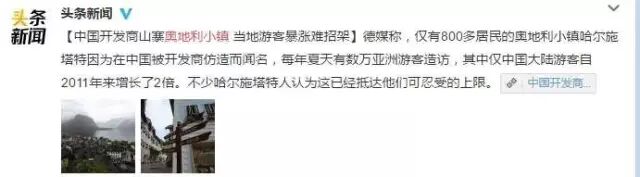 有的说,“中国这么大的文化古国有多少好东西,为什么还要复制我们的?”“如果他们复制我们的哈尔施塔特,我们就在阿尔卑斯山里复制一个长城。”“世界文化遗产能复制吗?”等等;还有一个哈尔施塔特的居民说,“我家的店铺是祖祖辈辈用心设计出来的,他们有权利复制去吗?”